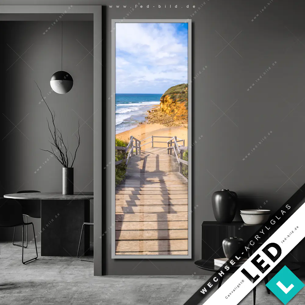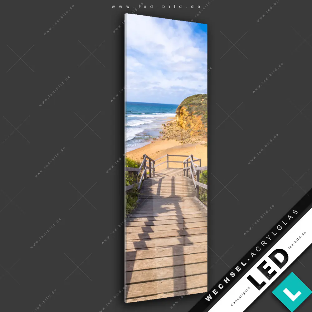 Canvalight® Wechsel-Acrylglas | Holztreppe zum einsamen Strand | Schmal