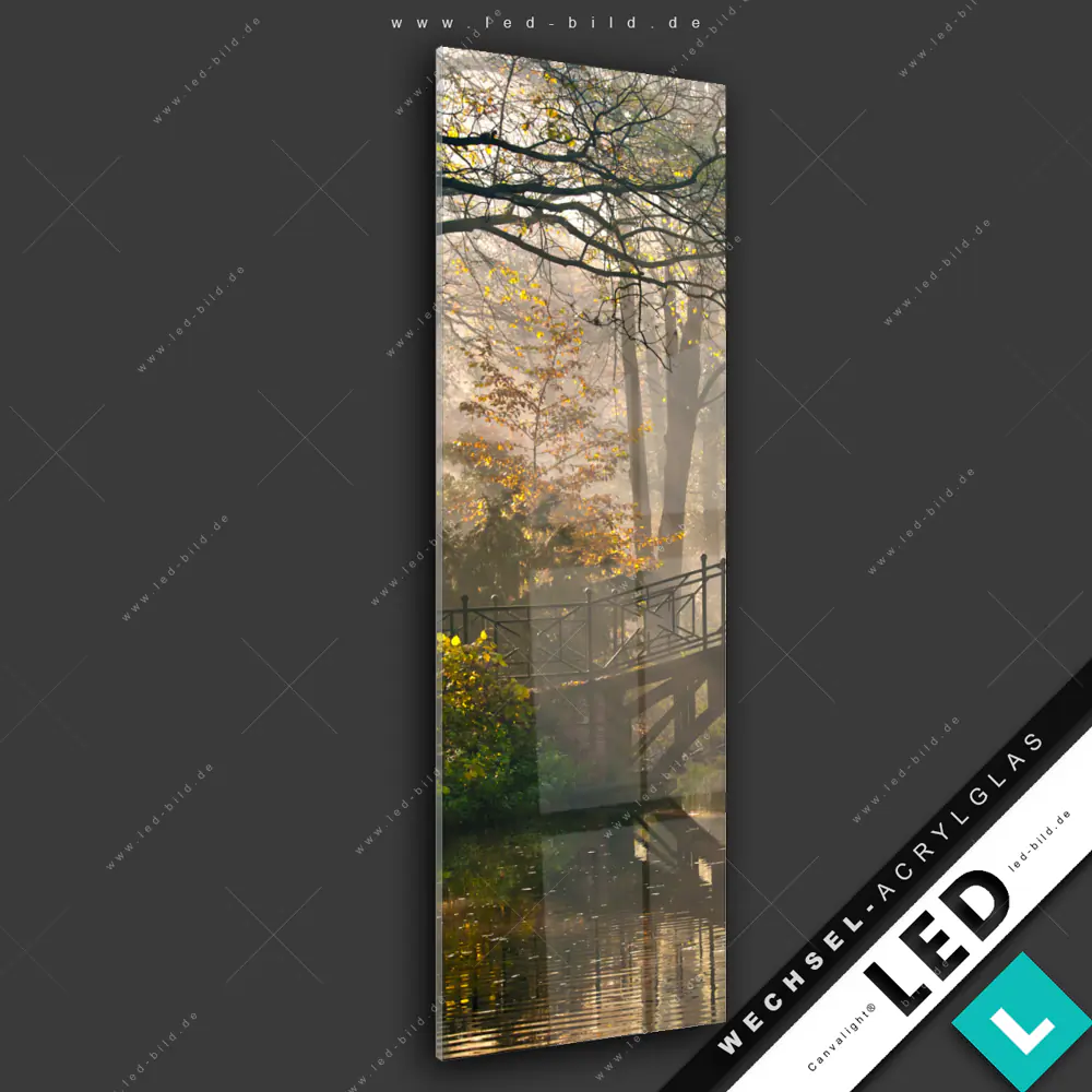 Canvalight® Wechsel-Acrylglas | Idyllischer Wald mit Brücke | Schmal