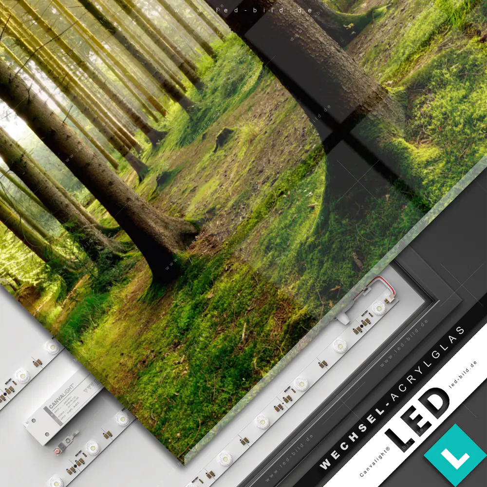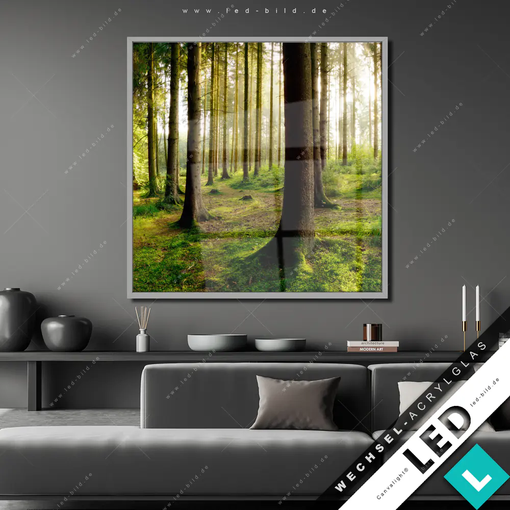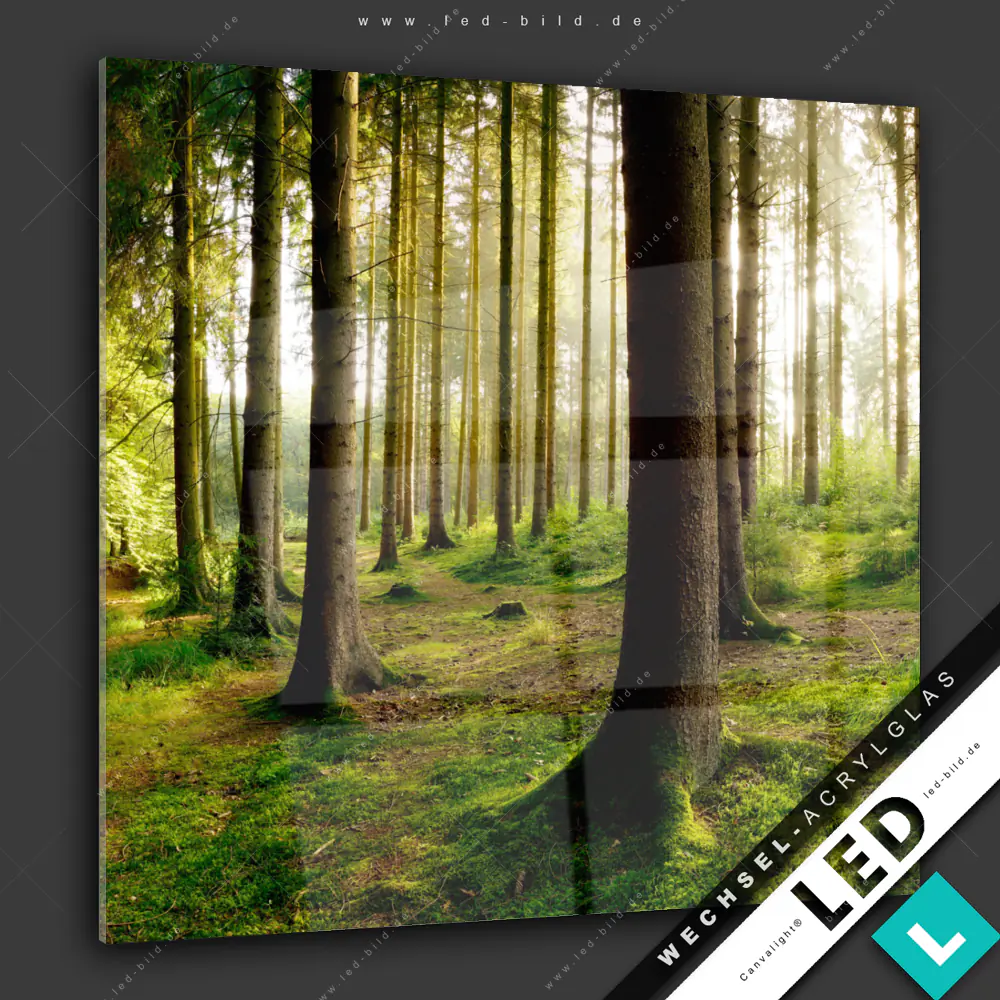 Canvalight® Wechsel-Acrylglas | Im tiefen Wald | Quadrat