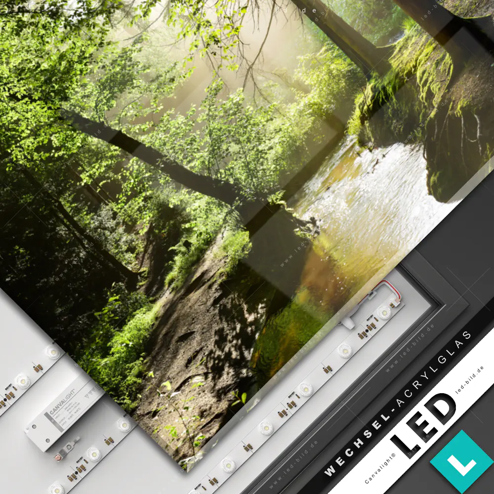 Canvalight® Wechsel-Acrylglas | Im Wald | Querformat