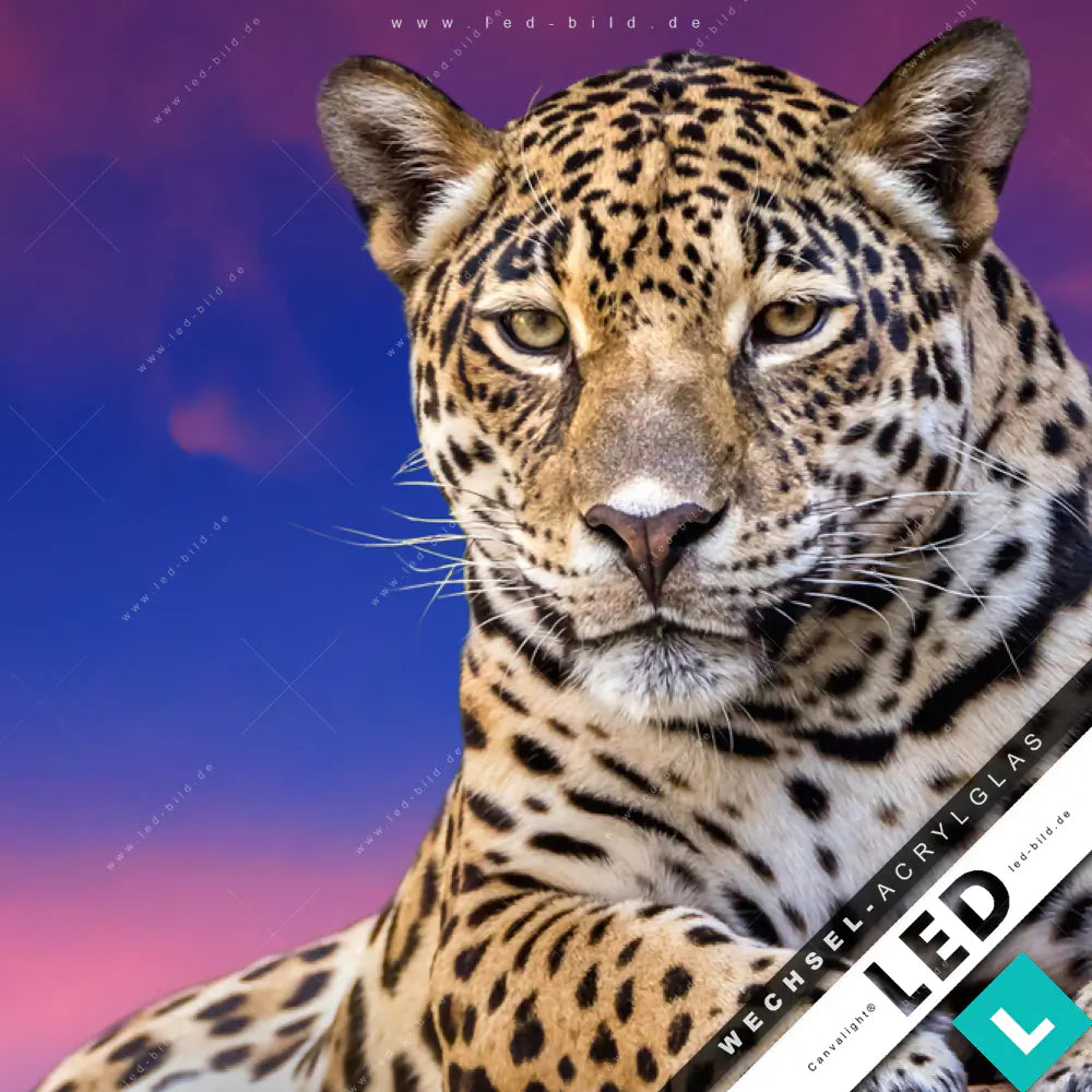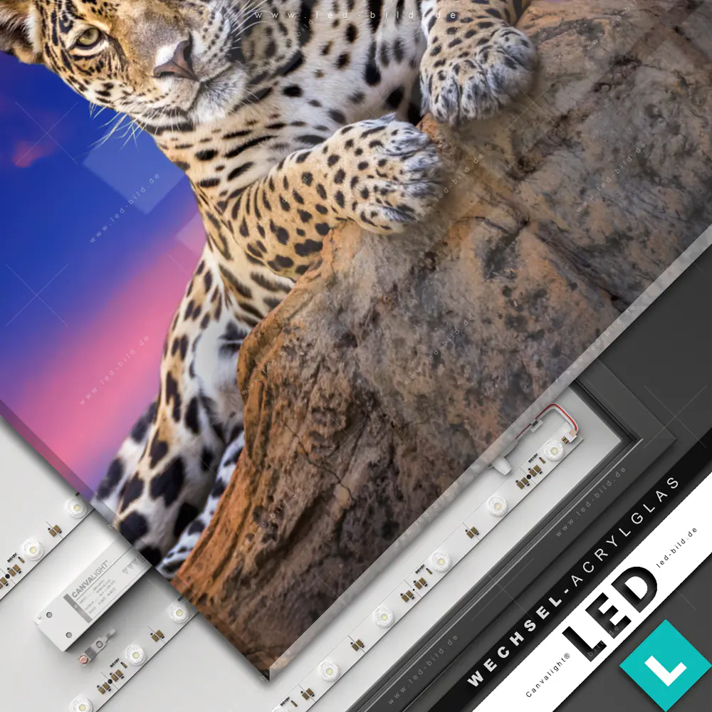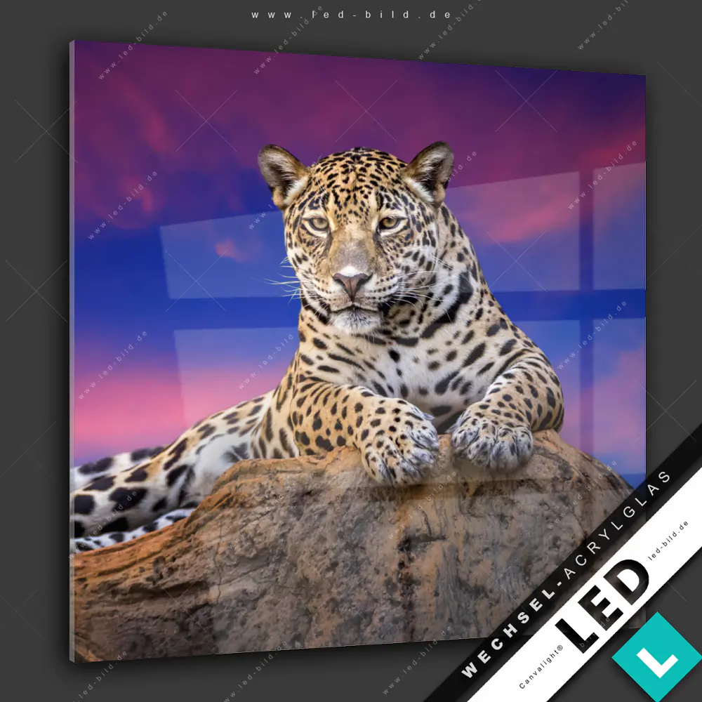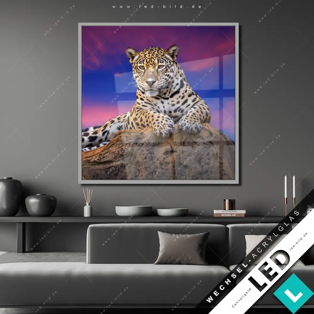 Canvalight® Wechsel-Acrylglas | Jaguar auf Felsen | Quadrat