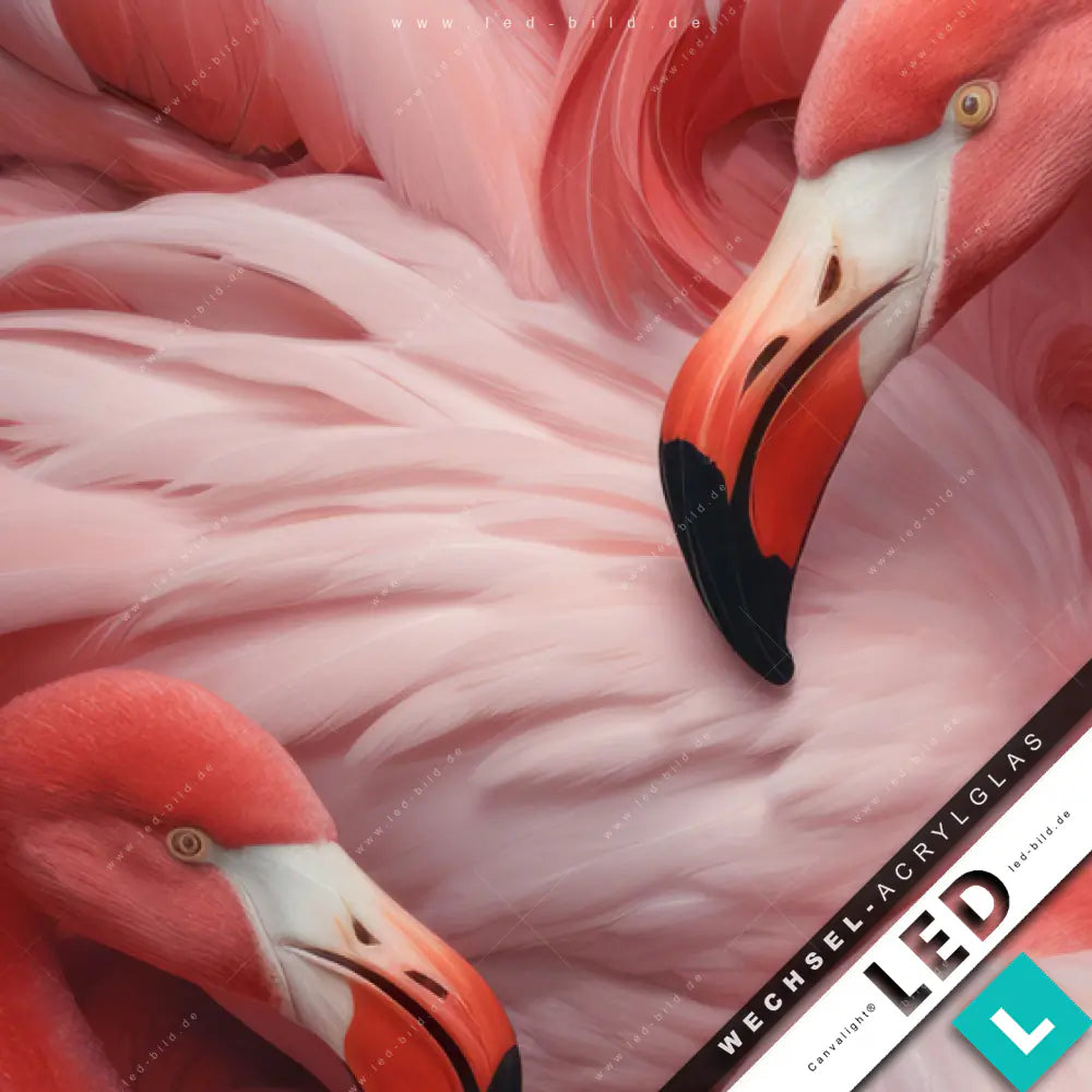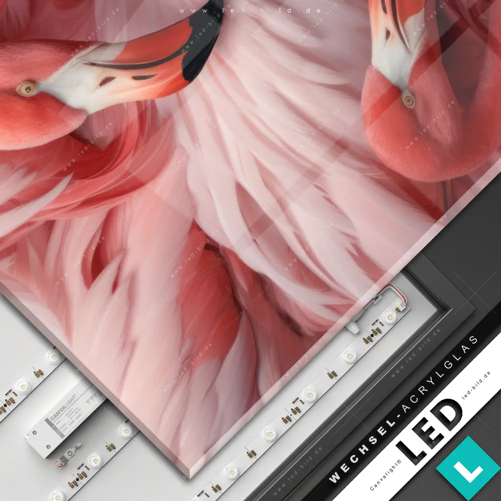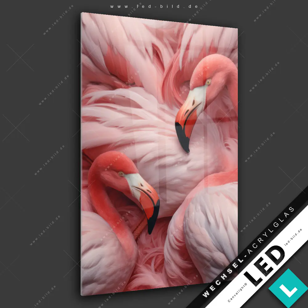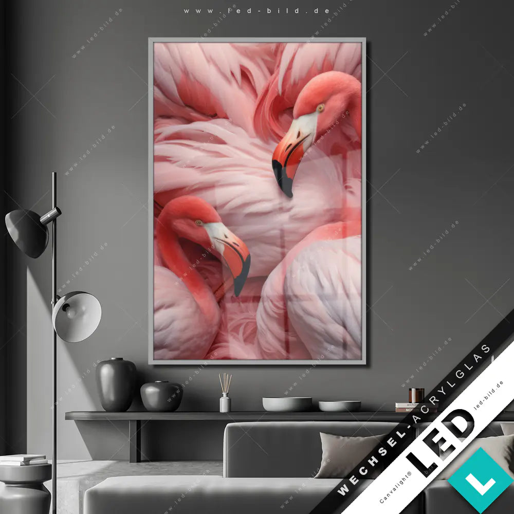Canvalight® Wechsel-Acrylglas | Kuschelnde Flamingos | Hochformat