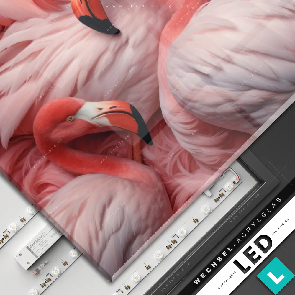 Canvalight® Wechsel-Acrylglas | Kuschelnde Flamingos | Quadrat