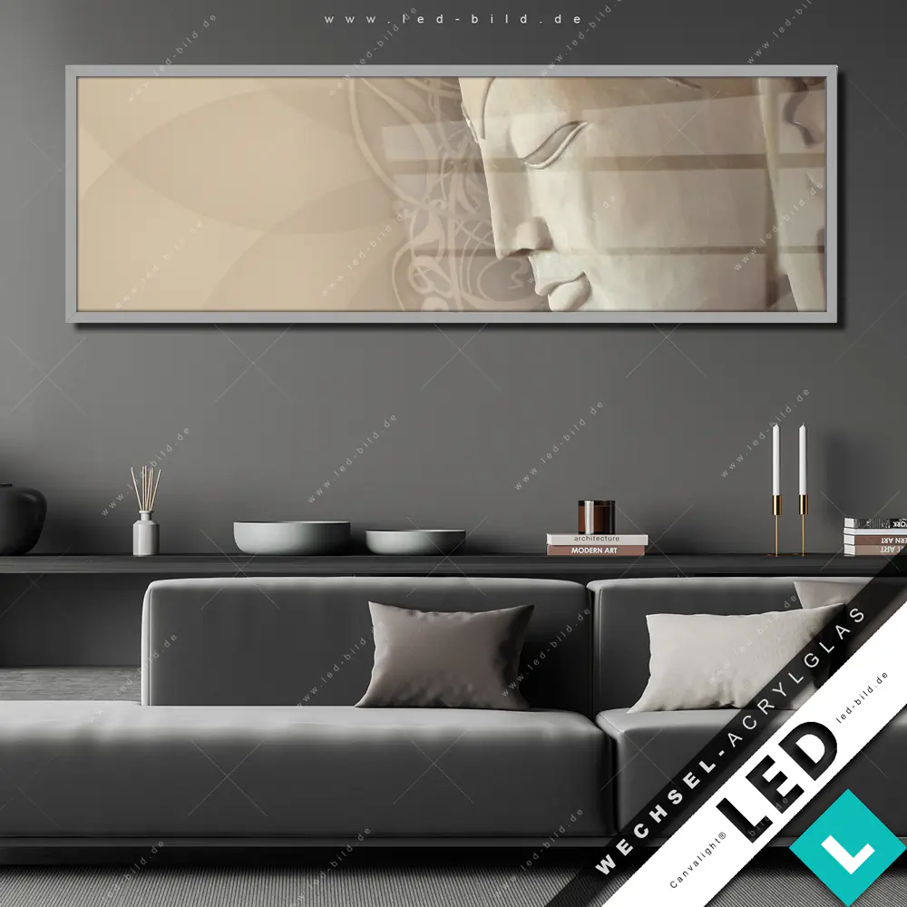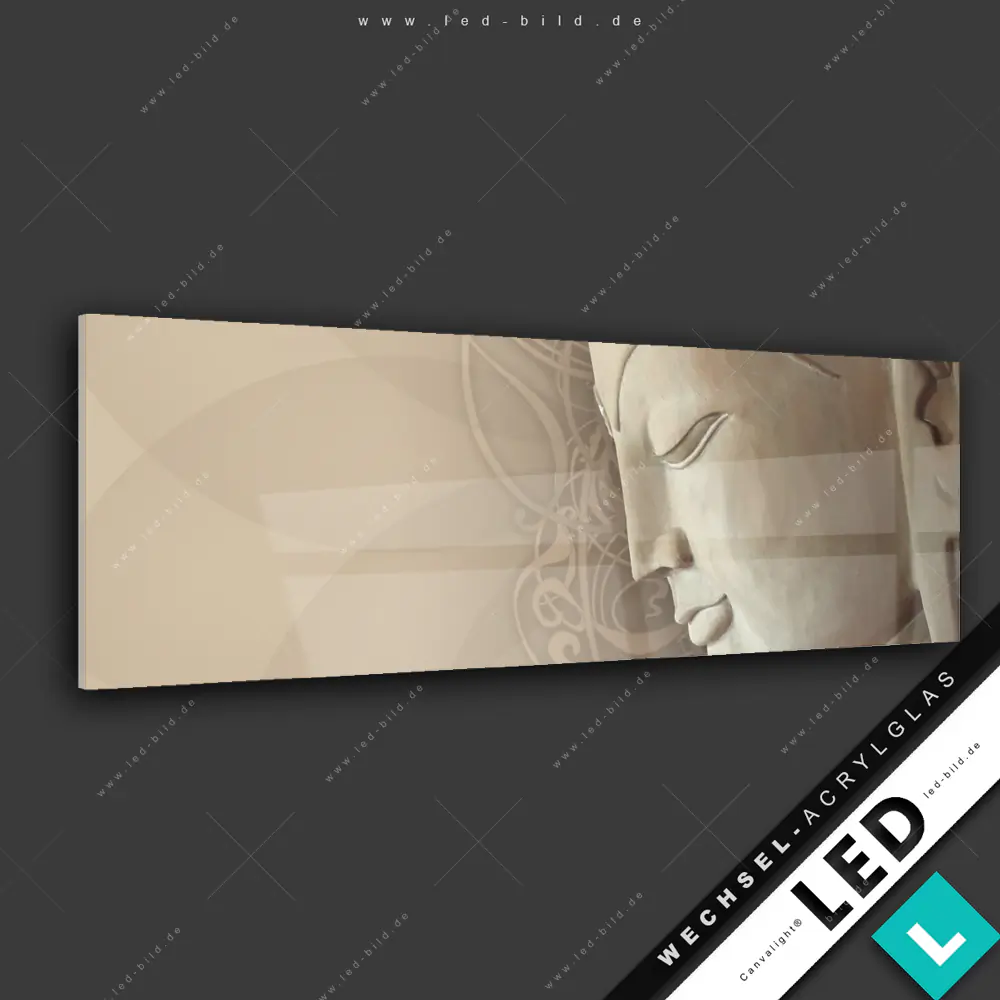 Canvalight® Wechsel-Acrylglas | Lächelnder Buddha | Panorama