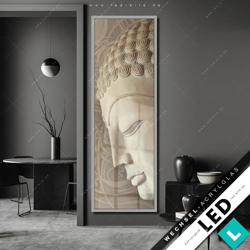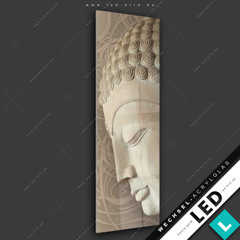 Canvalight® Wechsel-Acrylglas | Lächelnder Buddha | Schmal