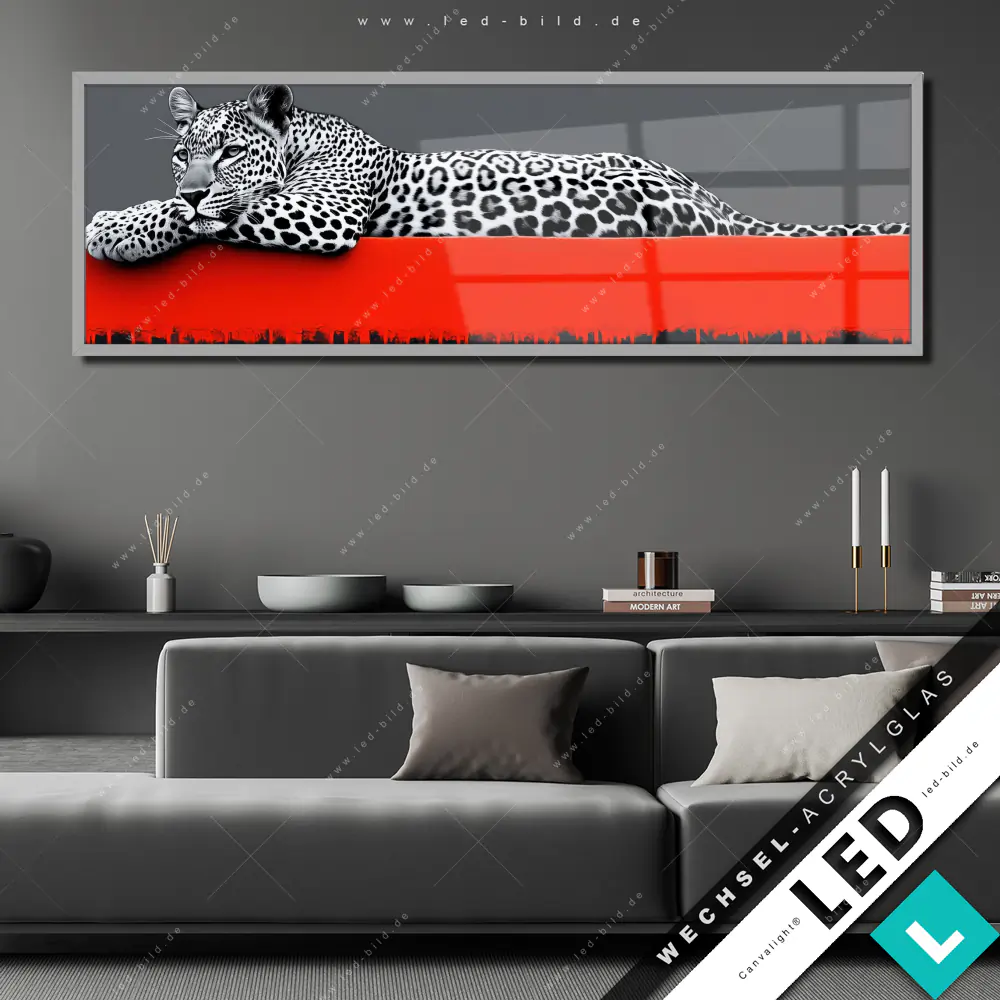 Canvalight® Wechsel-Acrylglas | Leopard - Eleganz trifft Abstraktion | Panorama