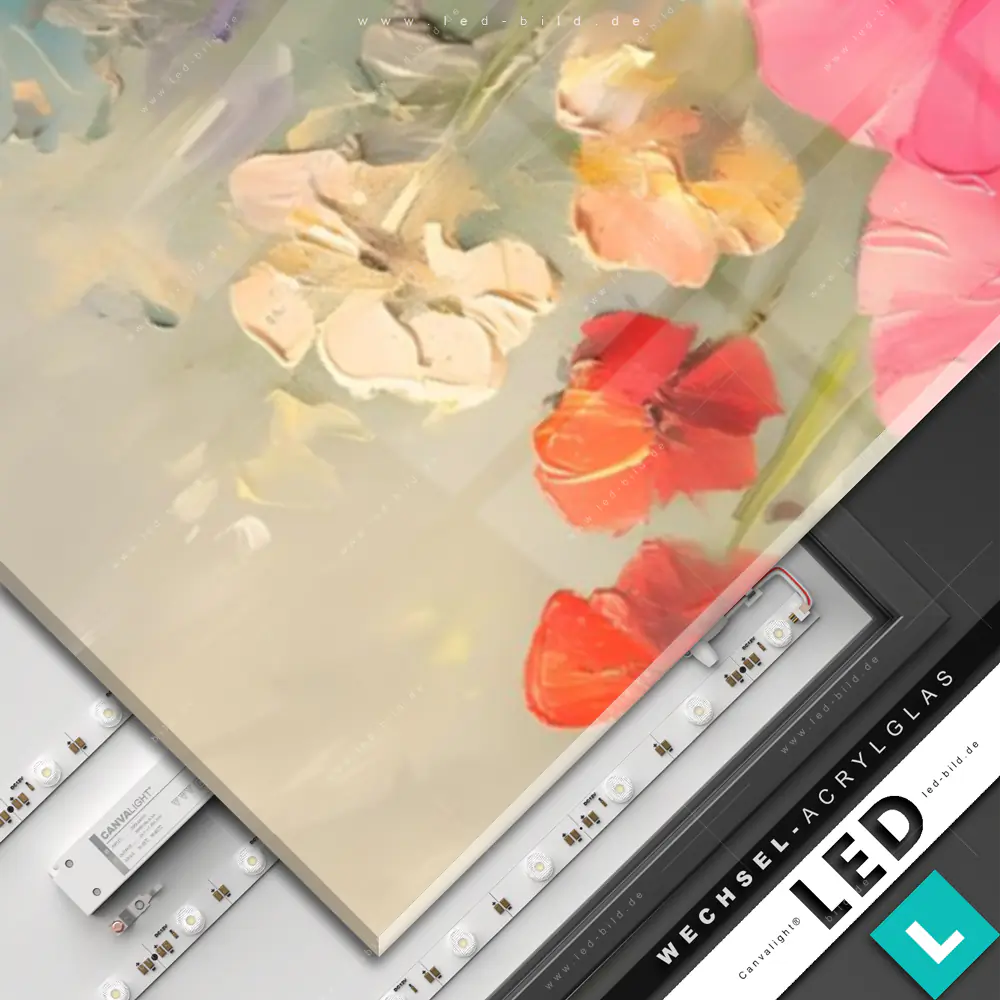 Canvalight® Wechsel-Acrylglas | Leuchtende Frühlingsblumen | Schmal