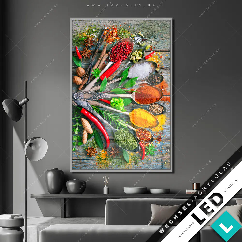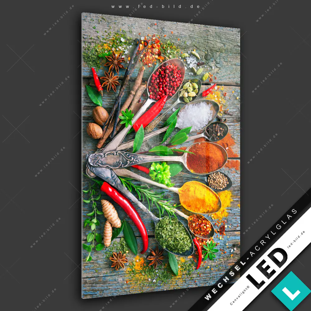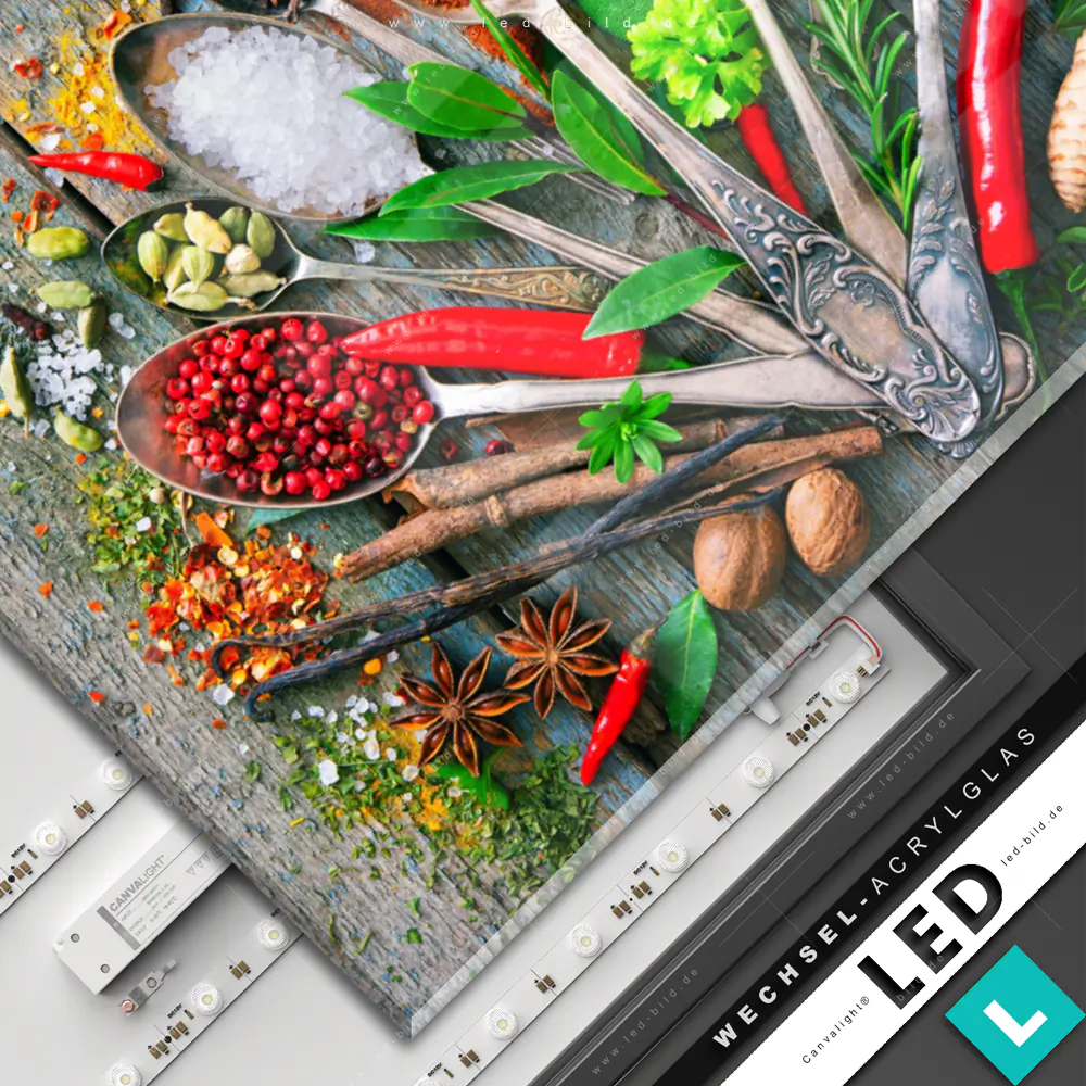 Canvalight® Wechsel-Acrylglas | Löffel mit Kräutern und Gewürzen | Hochformat