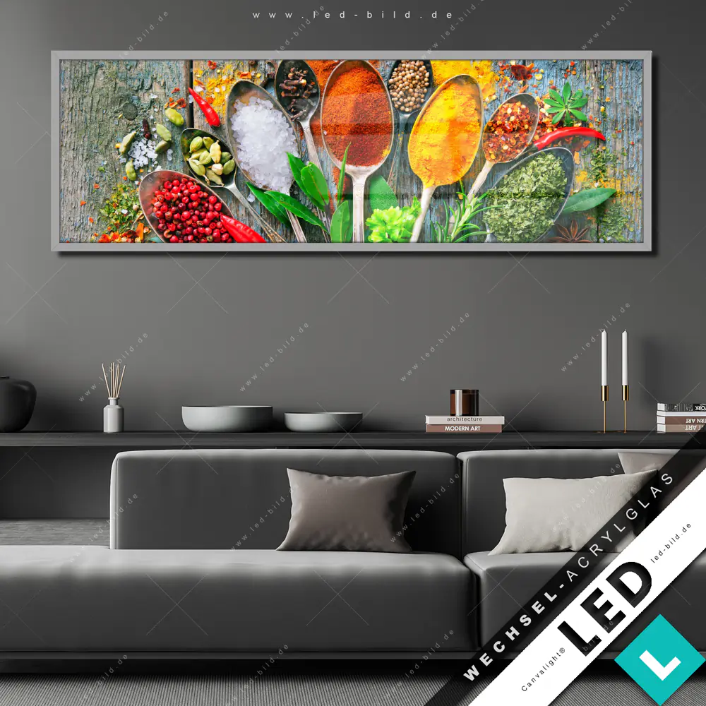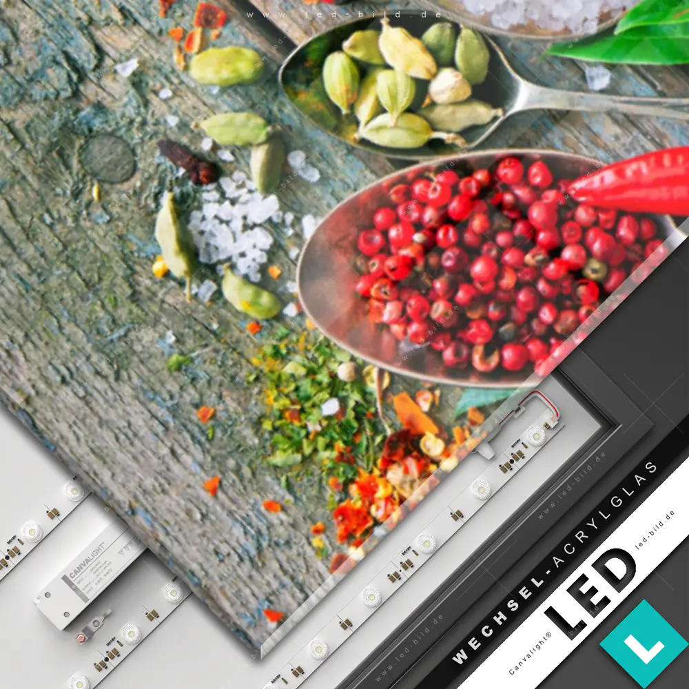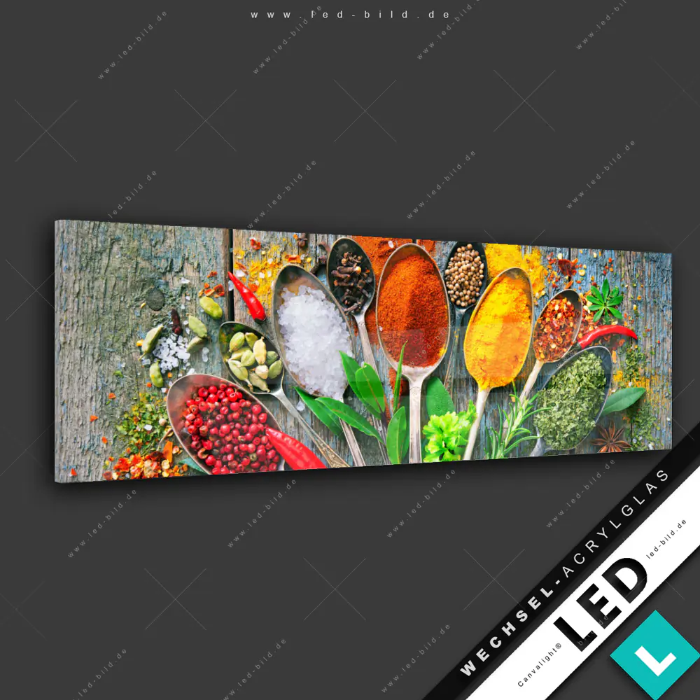 Canvalight® Wechsel-Acrylglas | Löffel mit Kräutern und Gewürzen | Panorama