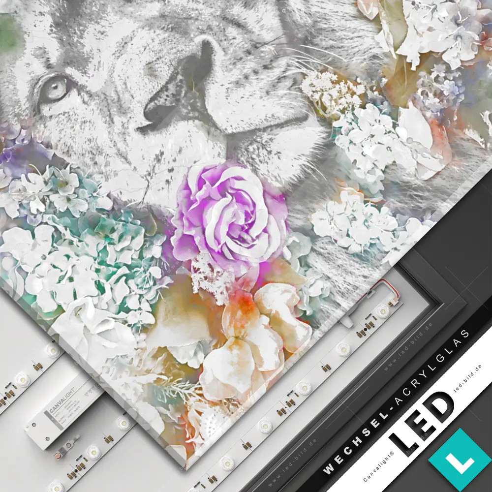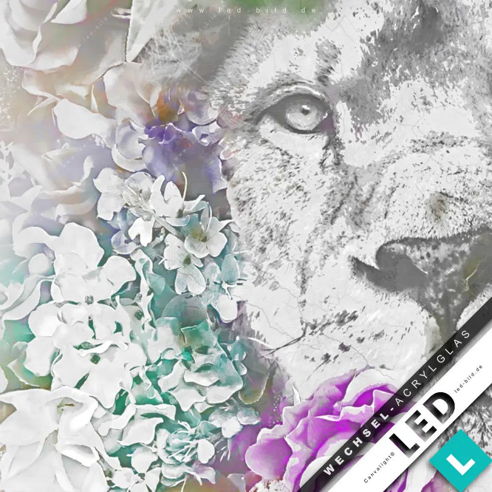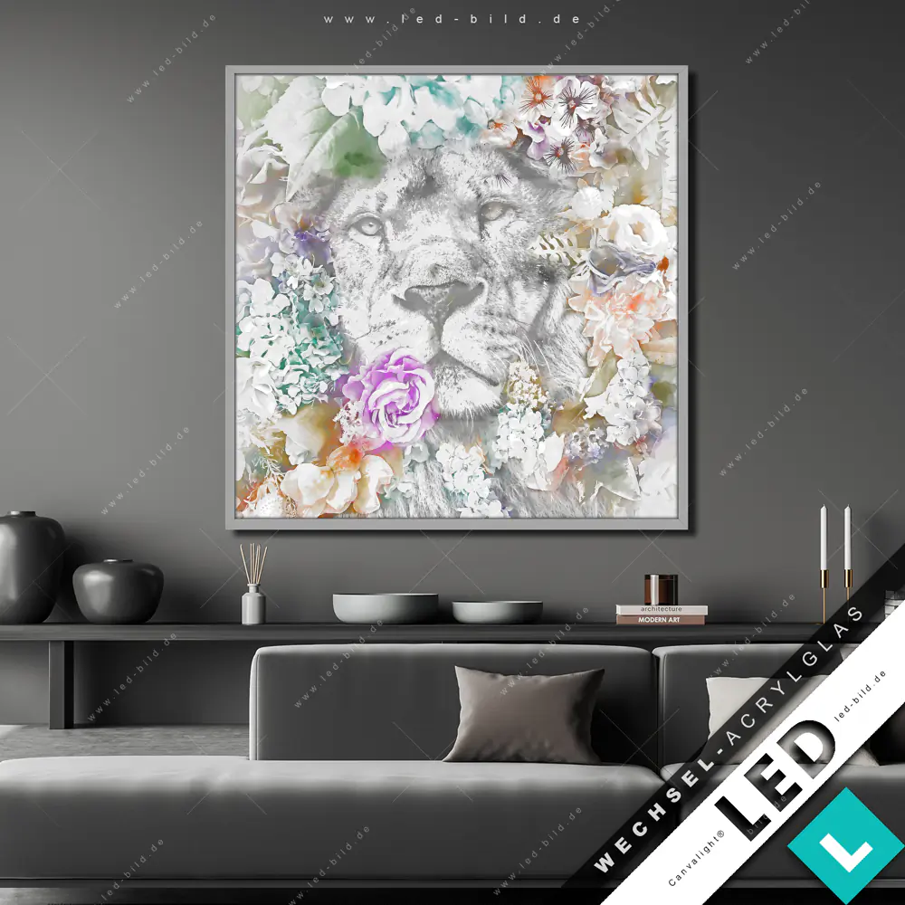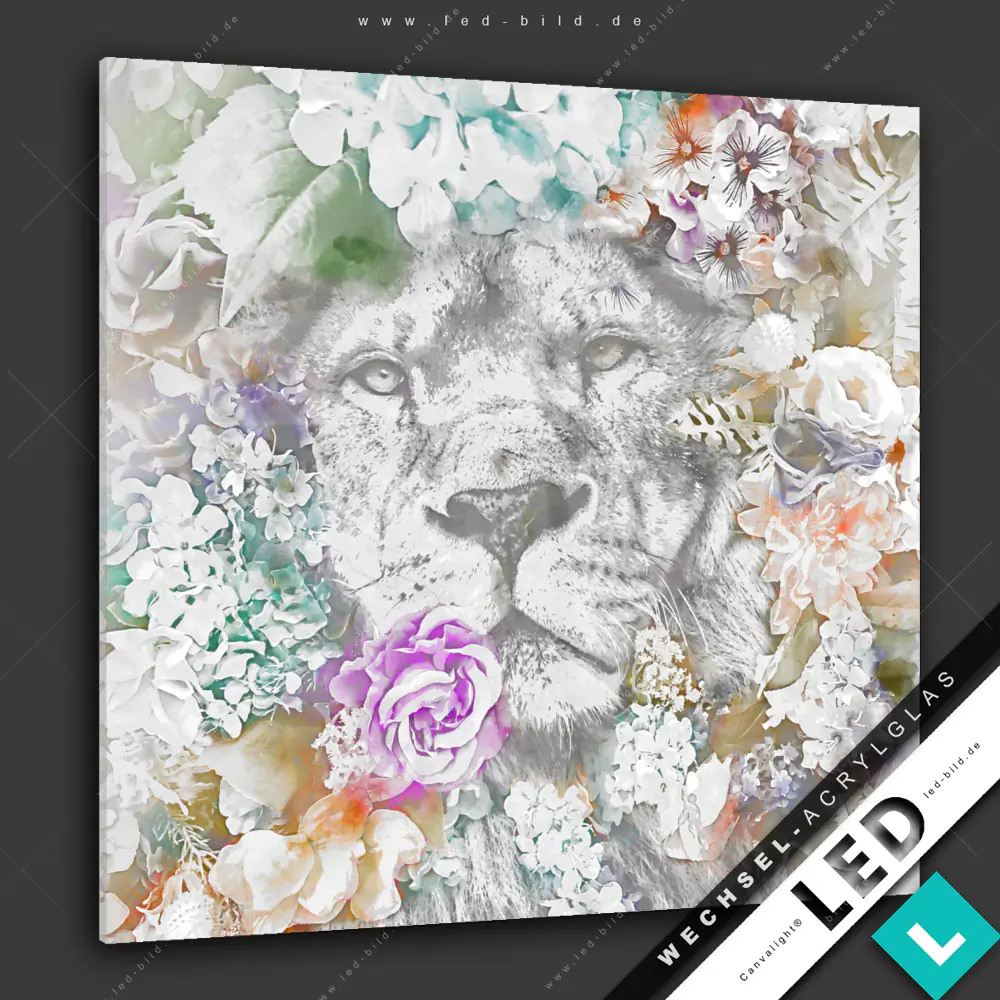 Canvalight® Wechsel-Acrylglas | Löwe & Blumen | Quadrat