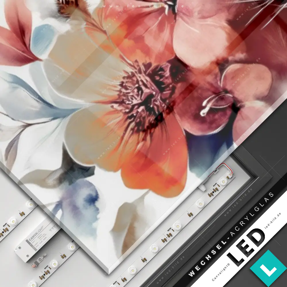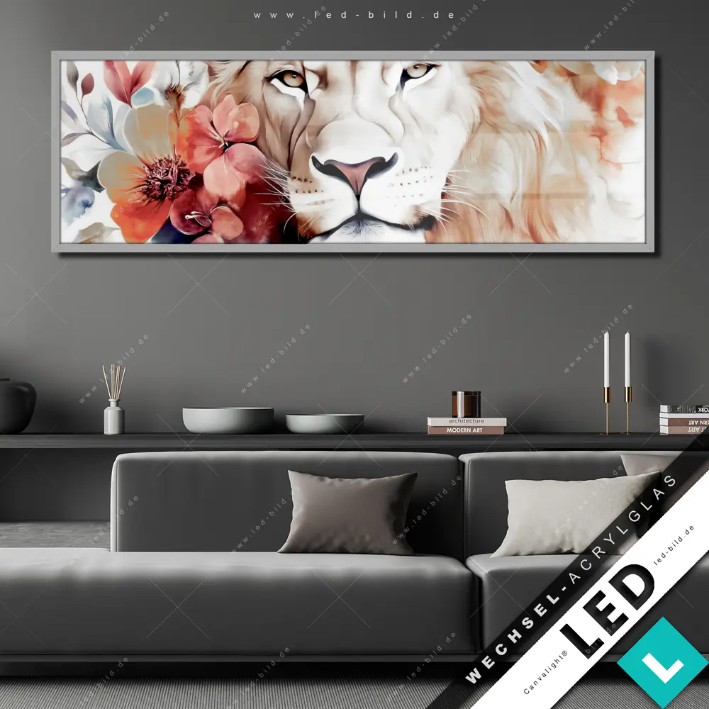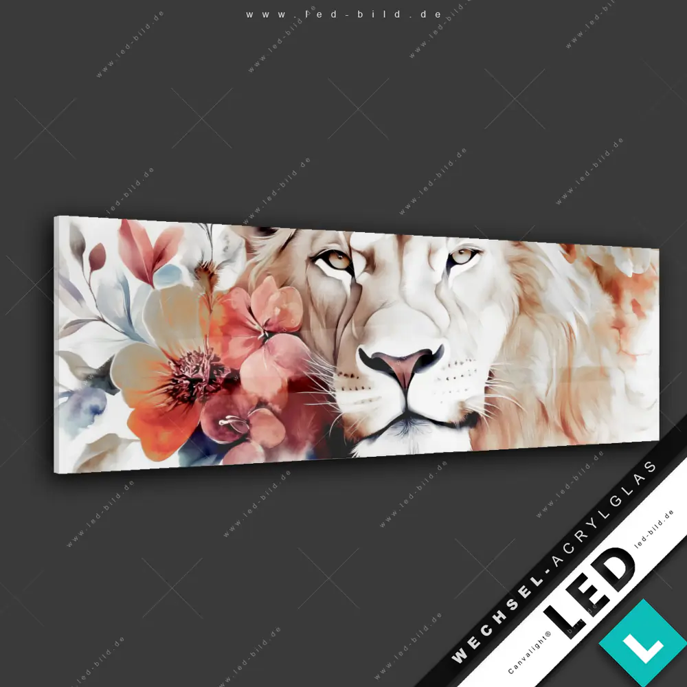 Canvalight® Wechsel-Acrylglas | Löwe mit Blumen | Panorama