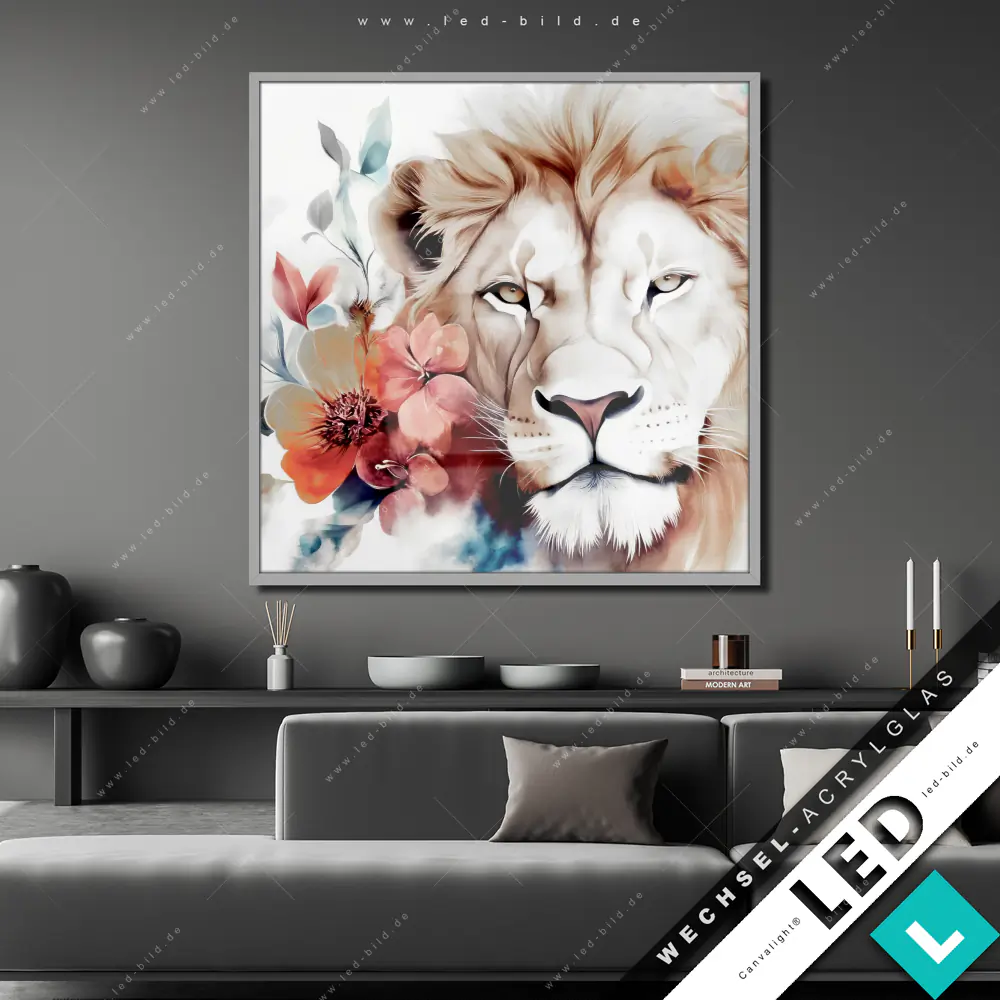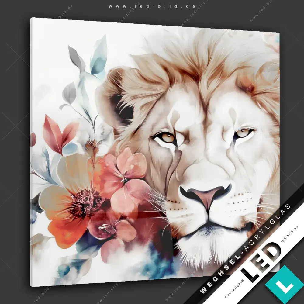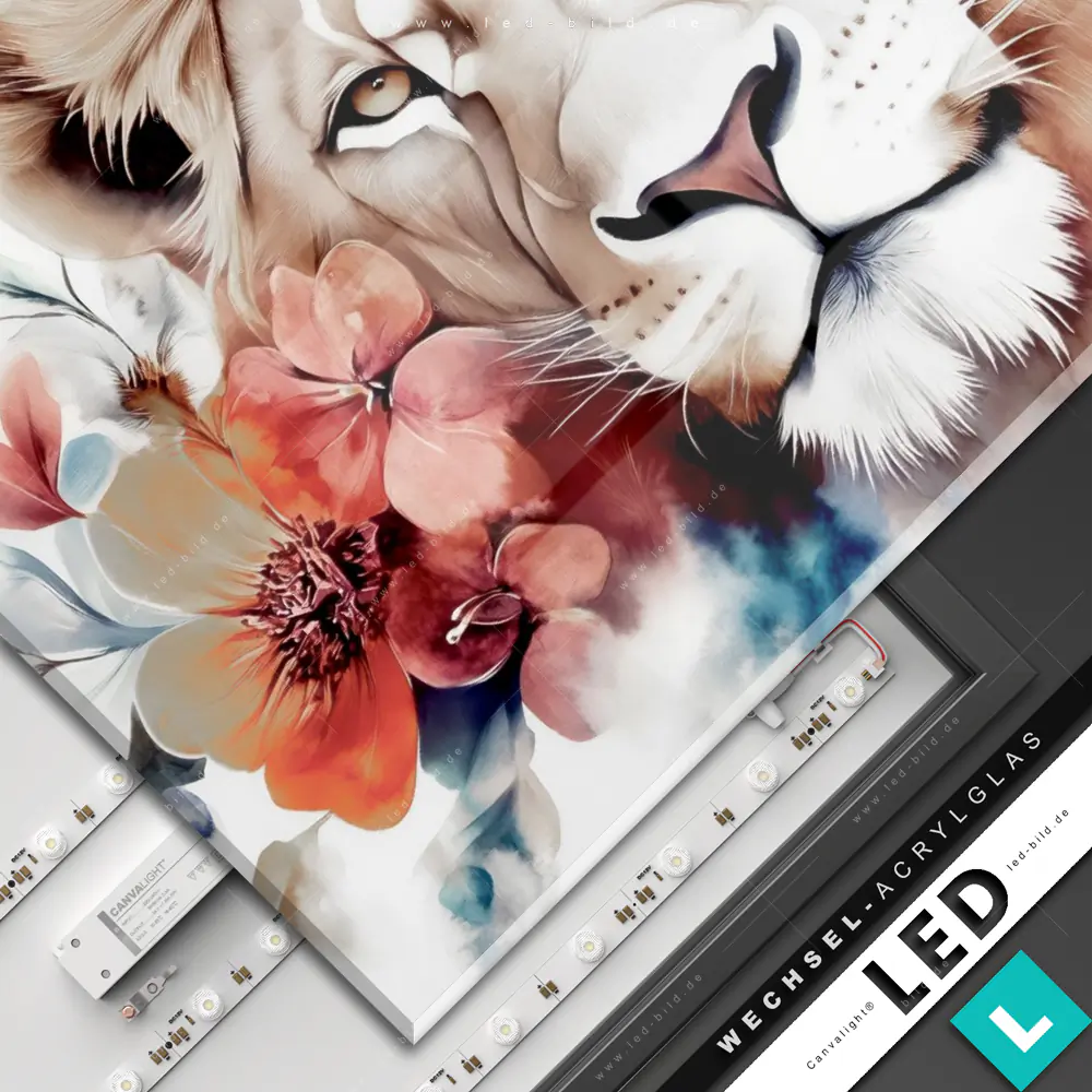 Canvalight® Wechsel-Acrylglas | Löwe mit Blumen | Quadrat