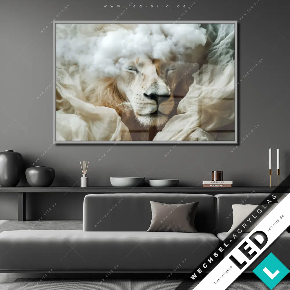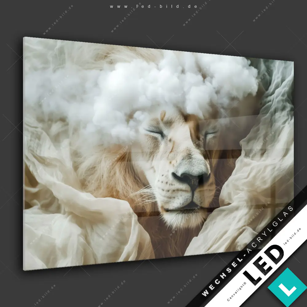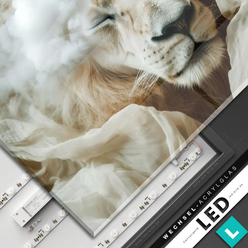 Canvalight® Wechsel-Acrylglas | Löwe sanft umhüllt | Querformat