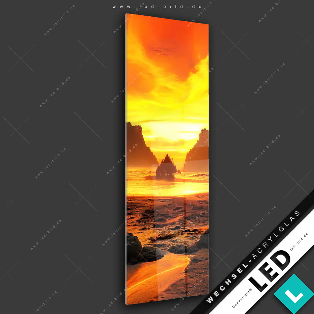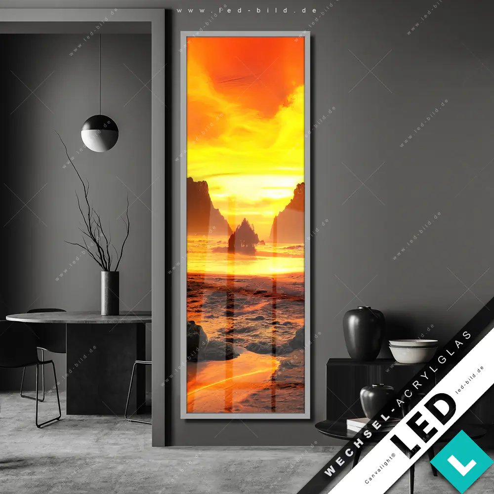 Canvalight® Wechsel-Acrylglas | Magische Steinlandschaft im Meer | Schmal