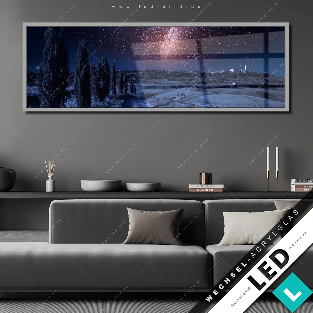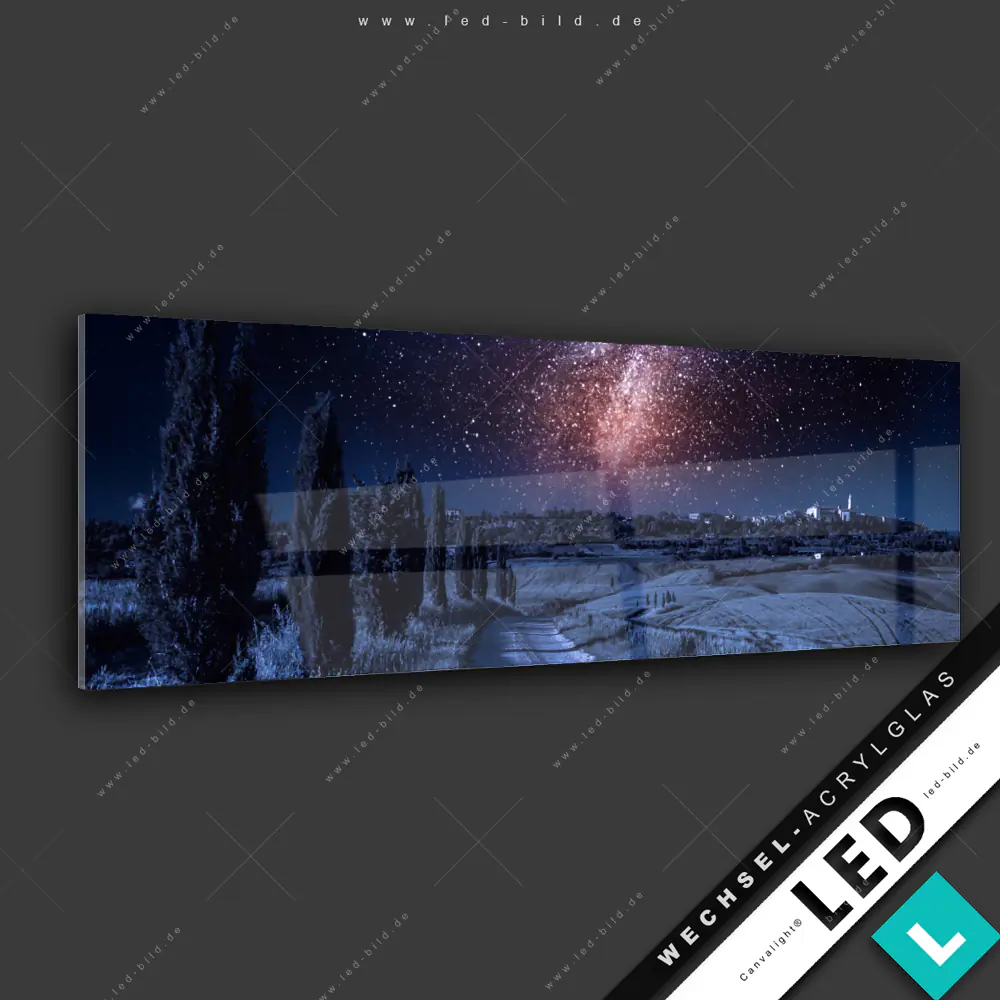 Canvalight® Wechsel-Acrylglas | Milchstraße über einem Feldweg | Panorama
