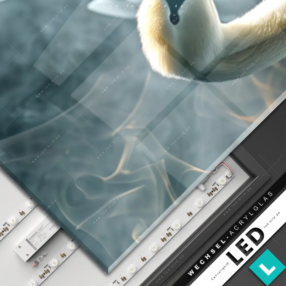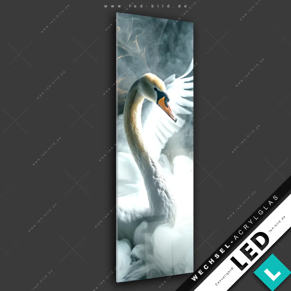 Canvalight® Wechsel-Acrylglas | Mystischer Schwan im Nebel | Schmal