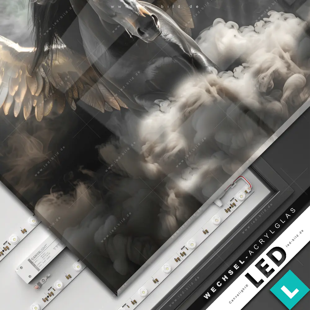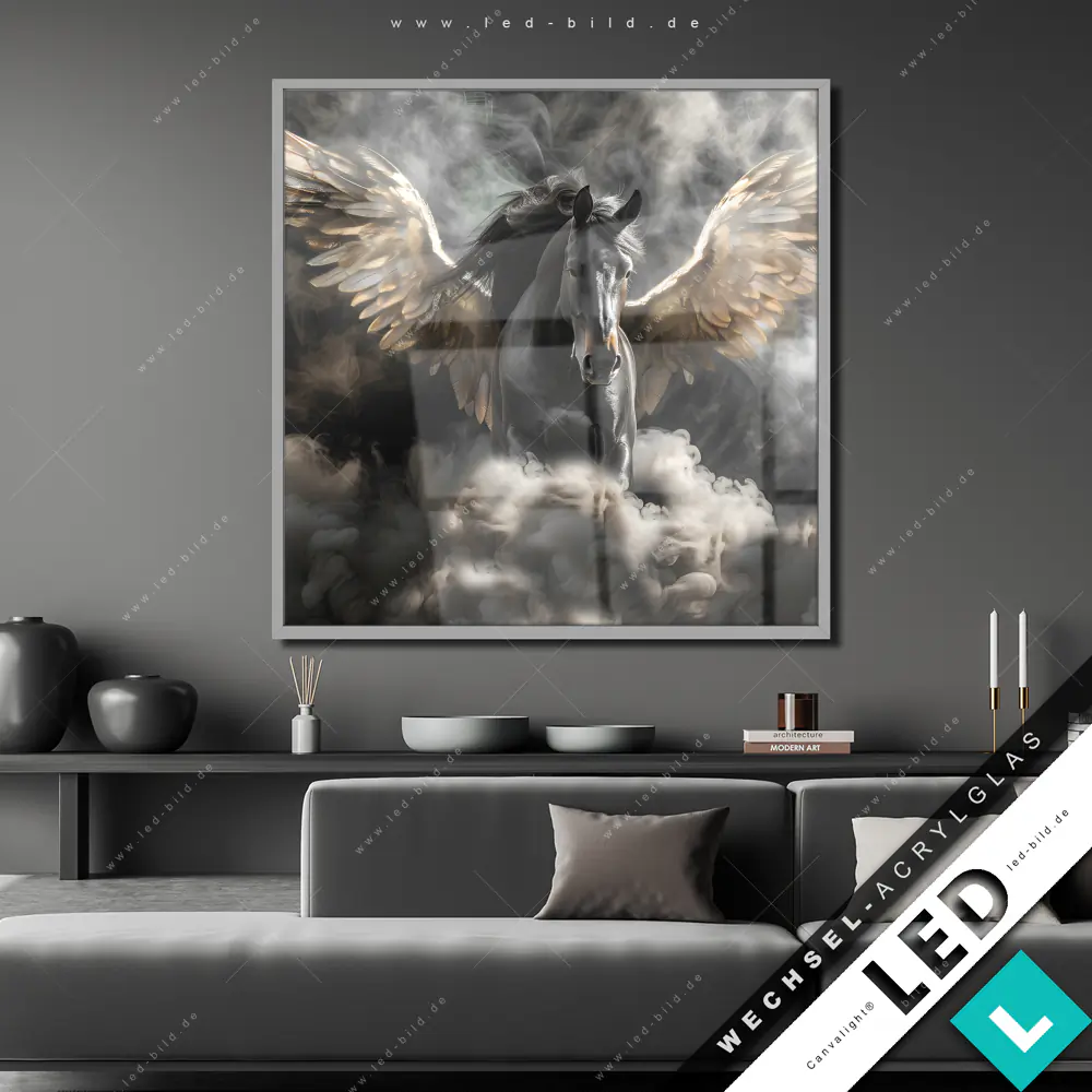 Canvalight® Wechsel-Acrylglas | Mystisches Pferd mit Flügeln | Quadrat