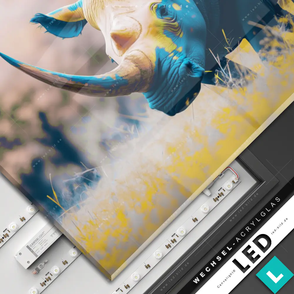 Canvalight® Wechsel-Acrylglas | Nashorn - Farben der Wildness | Querformat