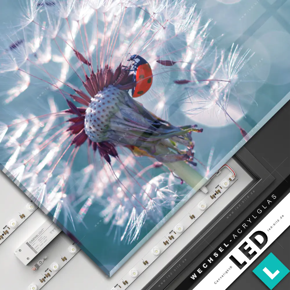 Canvalight® Wechsel-Acrylglas | Pusteblume & Marienkäfer | Querformat