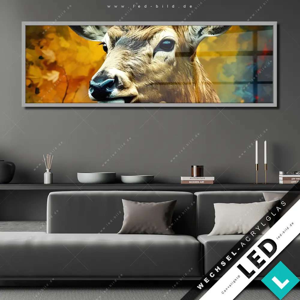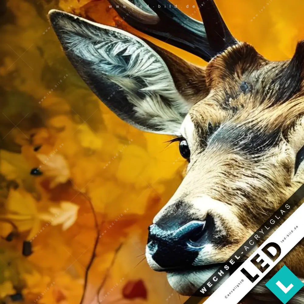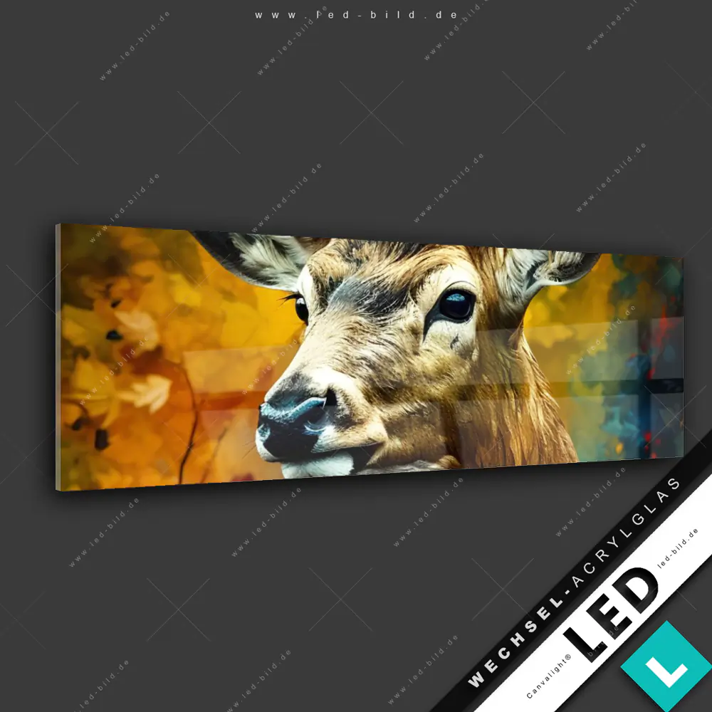 Canvalight® Wechsel-Acrylglas | Rothirsch im Herbstwald | Panorama