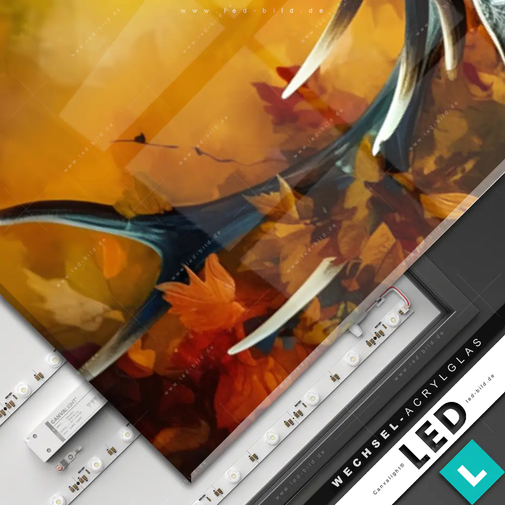 Canvalight® Wechsel-Acrylglas | Rothirsch im Herbstwald | Schmal