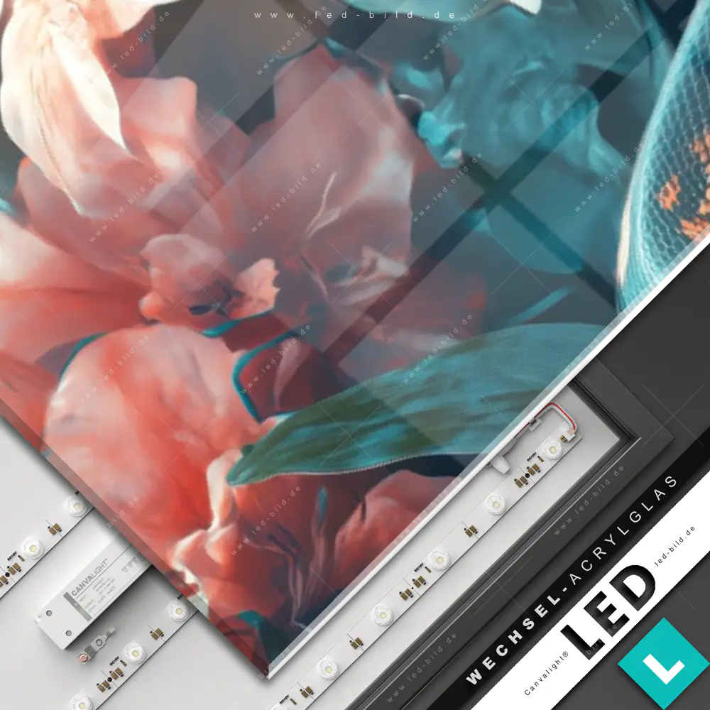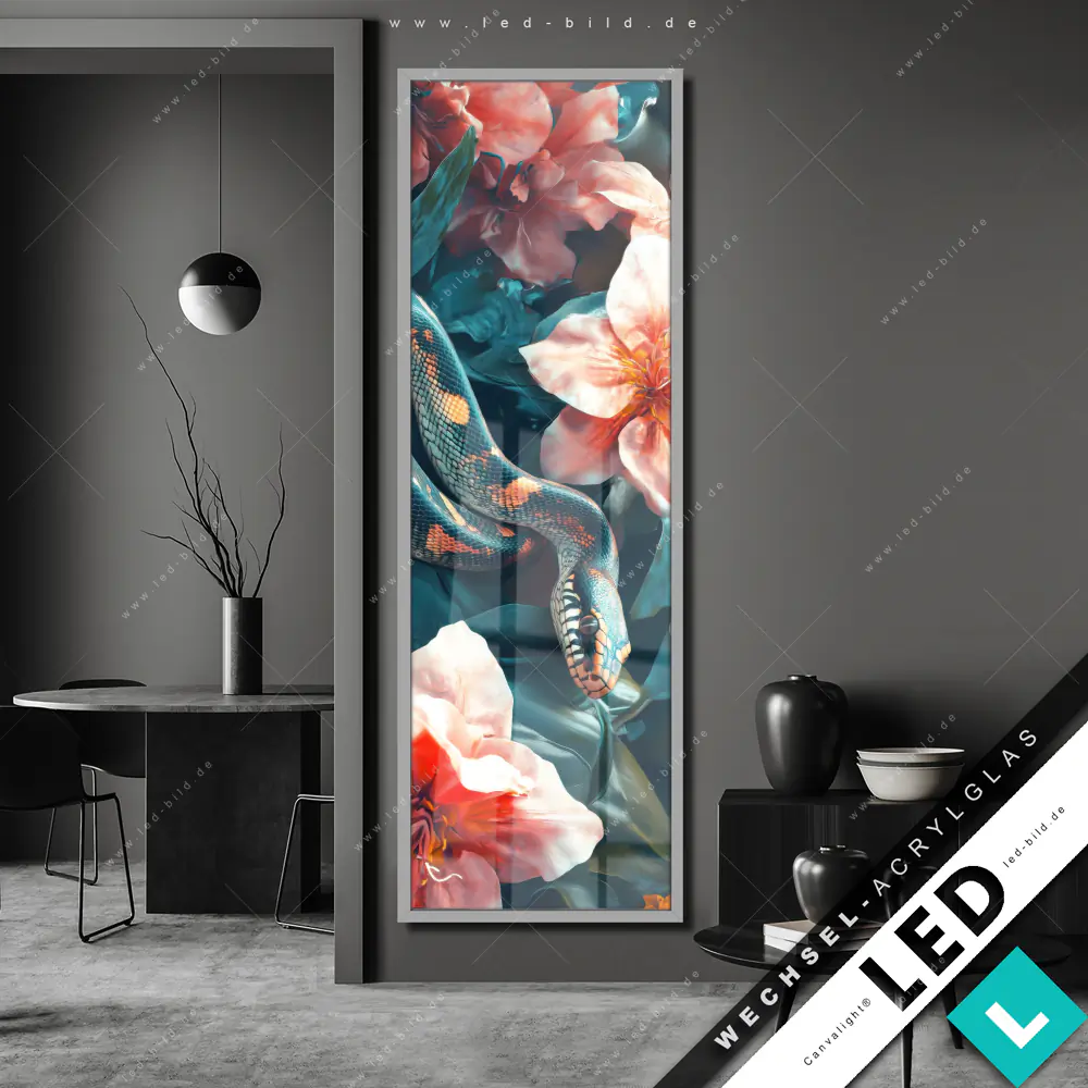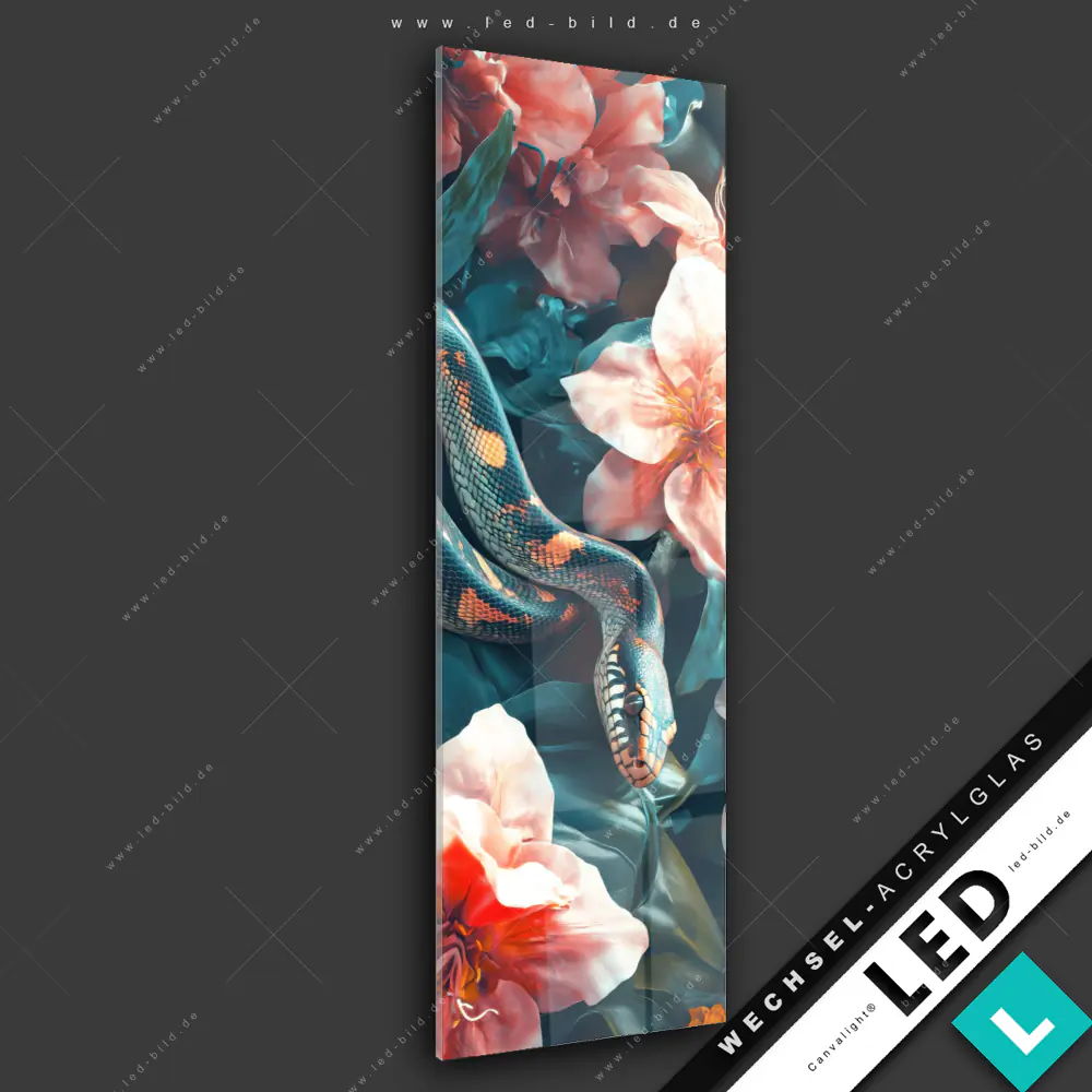 Canvalight® Wechsel-Acrylglas | Schlange zwischen großen Blüten | Schmal