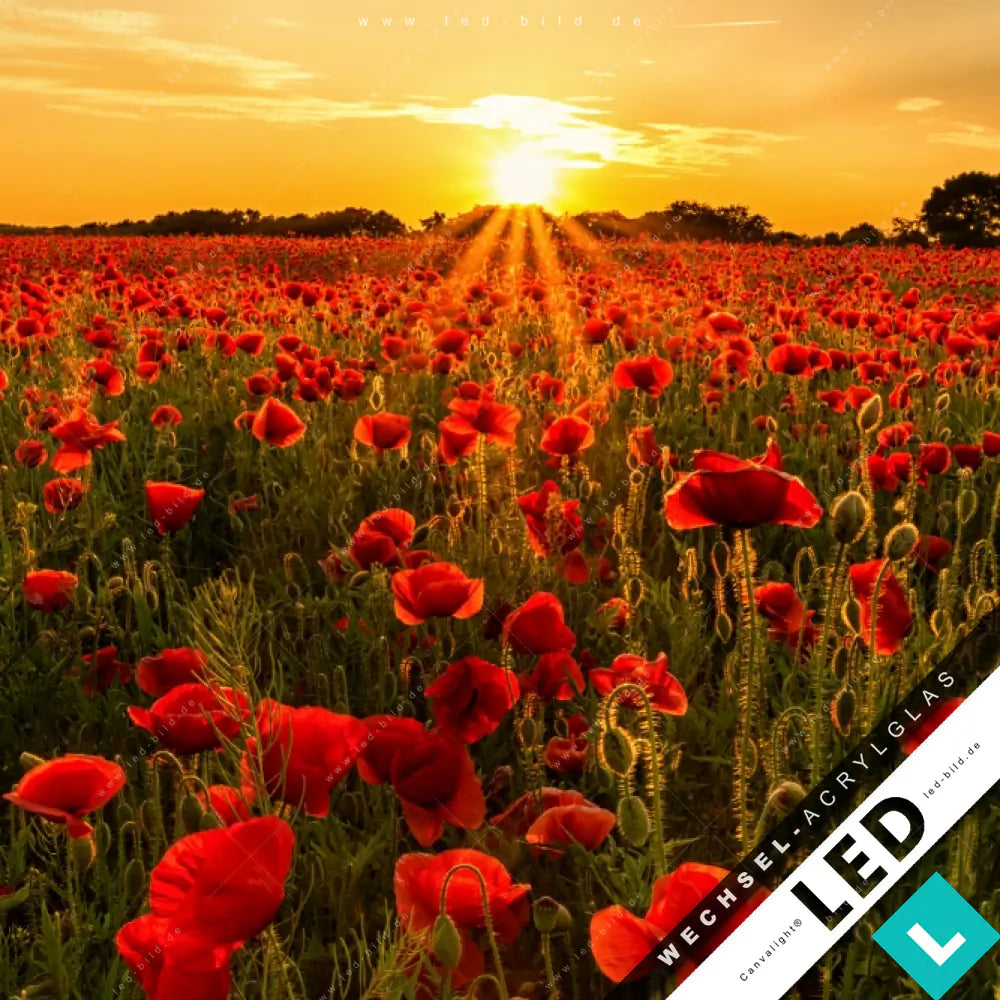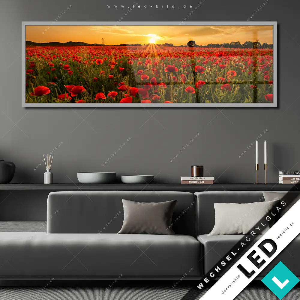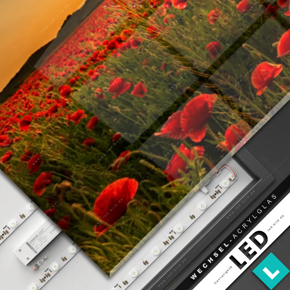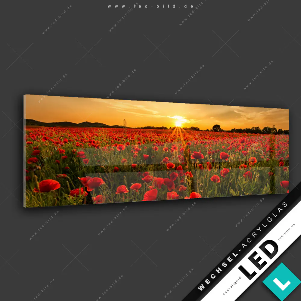 Canvalight® Wechsel-Acrylglas | Sommerlandschaft mit rotem Mohn | Panorama