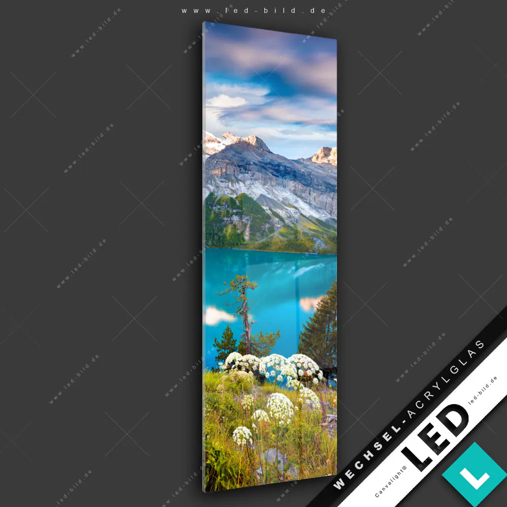 Canvalight® Wechsel-Acrylglas | Sommermorgen am Bergsee | Schmal