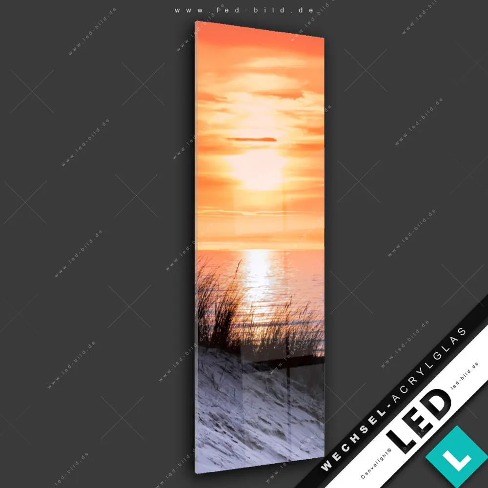 Canvalight® Wechsel-Acrylglas | Sonnenuntergang mit Düne und Meer | Schmal
