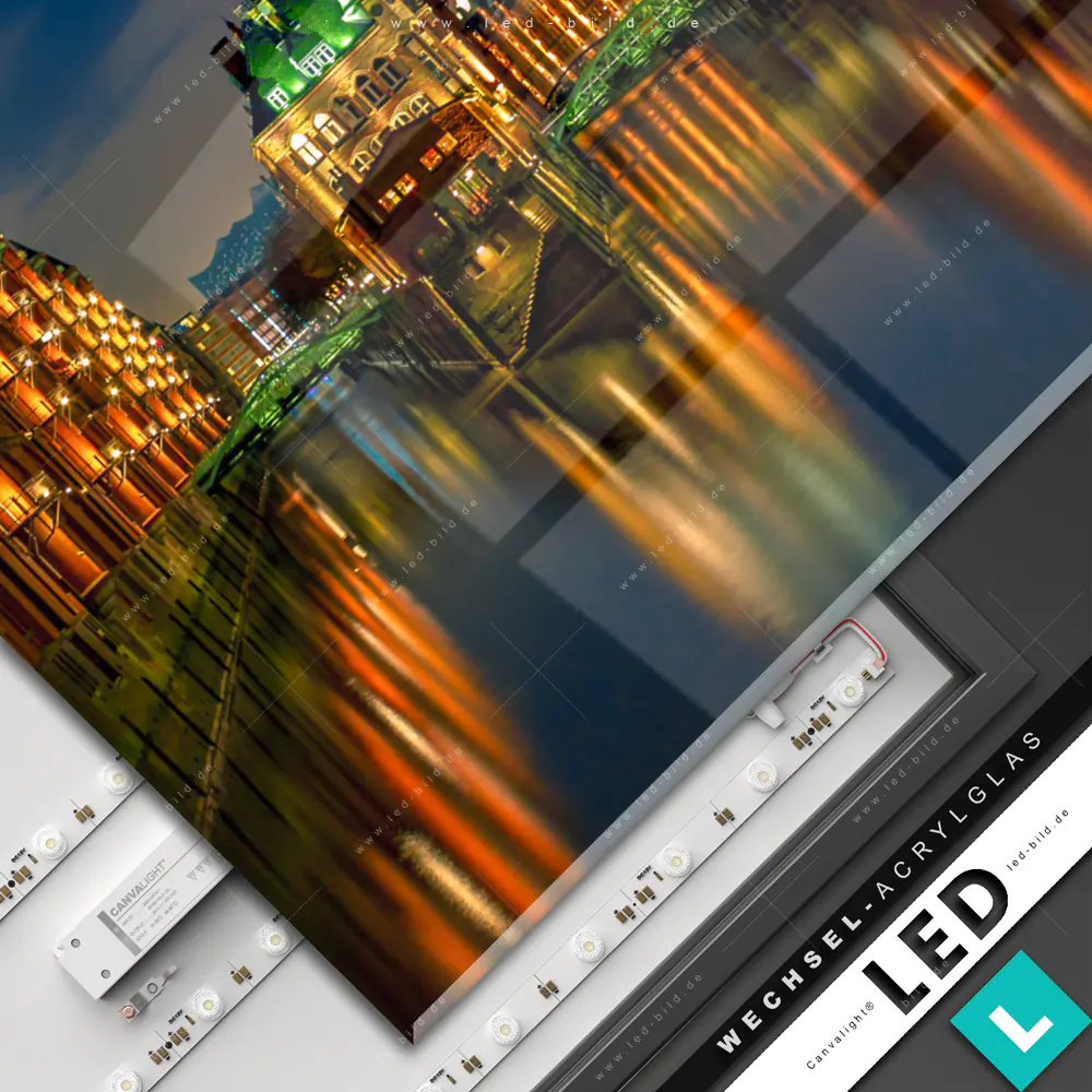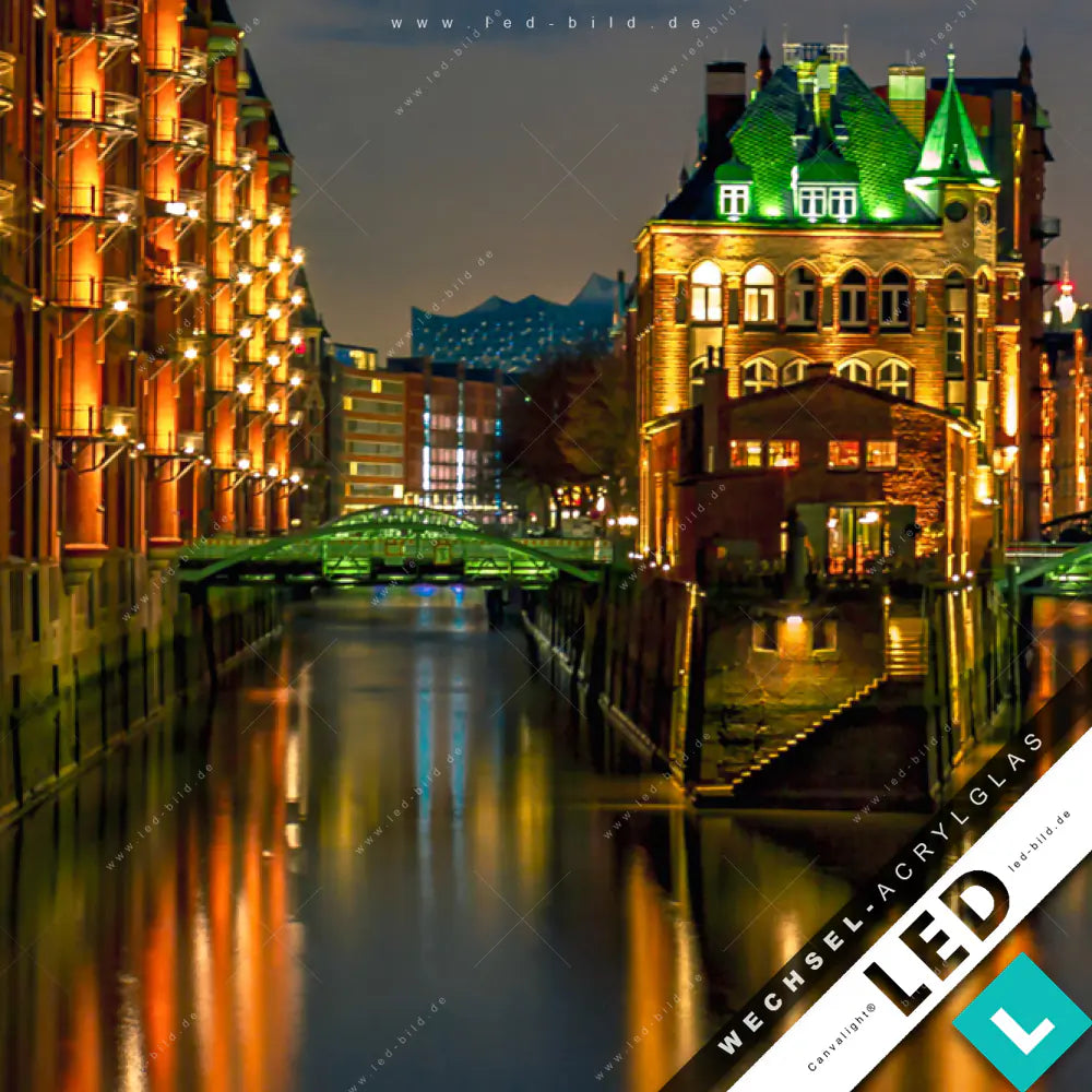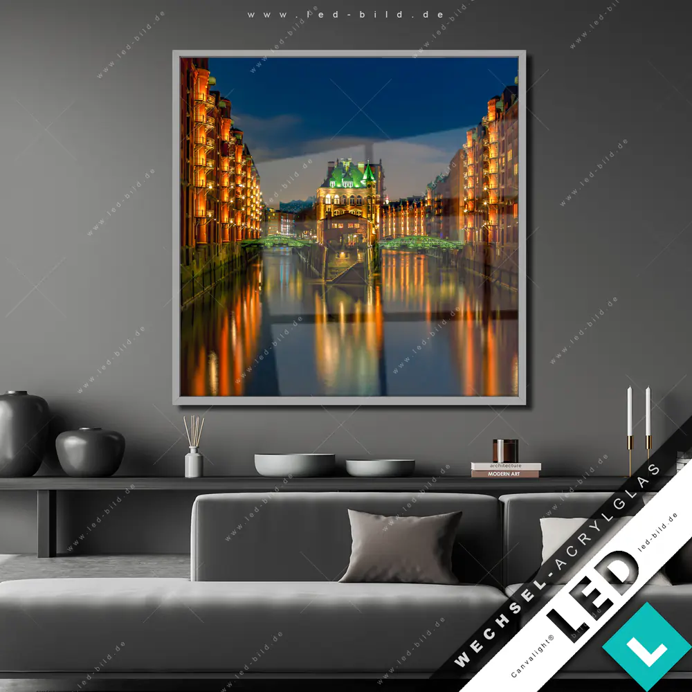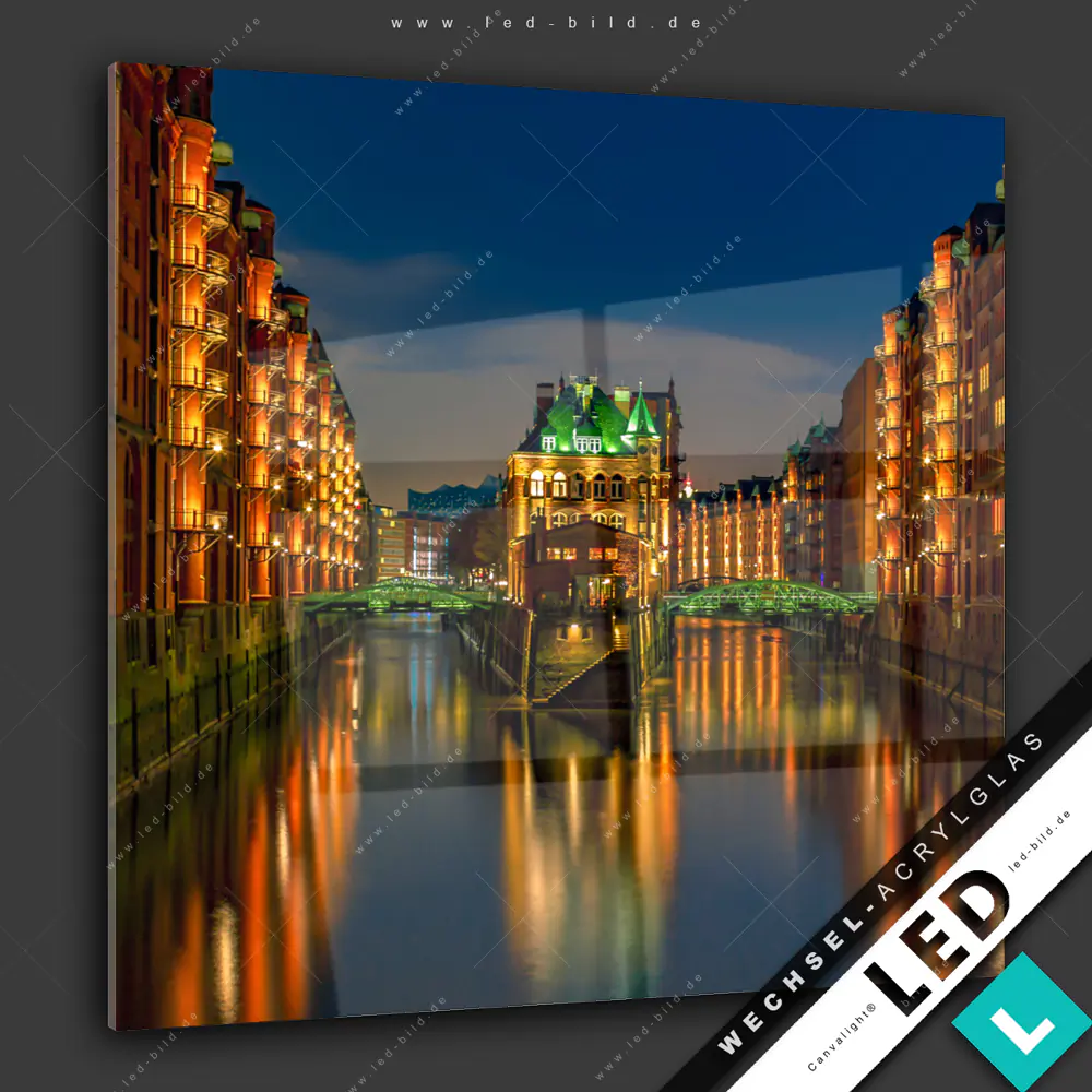 Canvalight® Wechsel-Acrylglas | Speicherstadt Hamburg | Quadrat