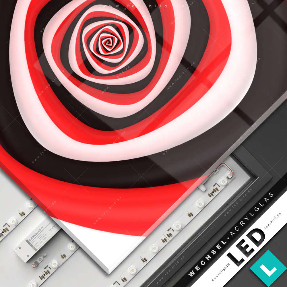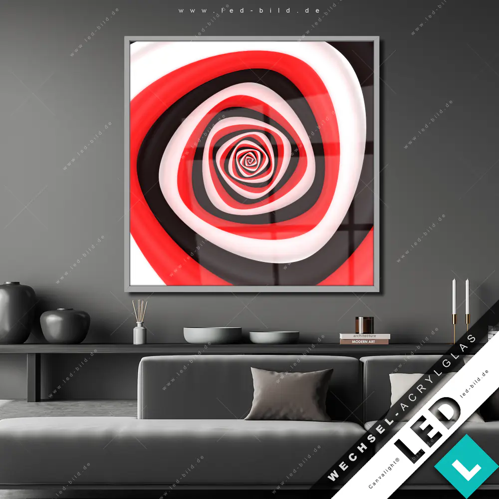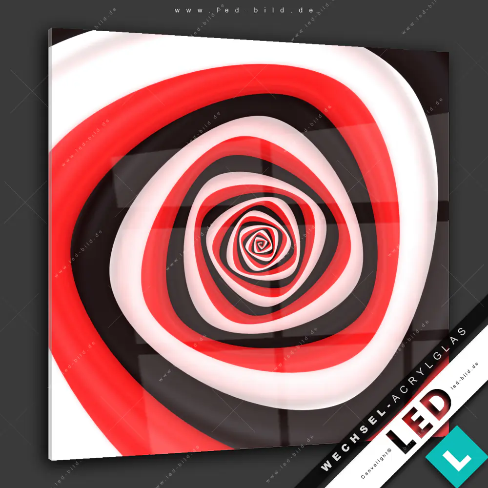 Canvalight® Wechsel-Acrylglas | Spirale in rot weiß schwarz | Quadrat