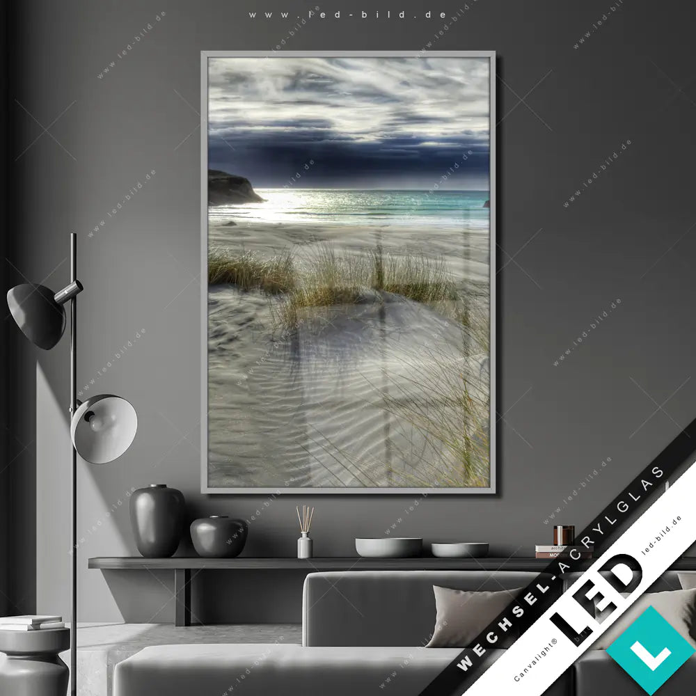Canvalight® Wechsel-Acrylglas | Stürmischer Himmel am Strand | Hochformat