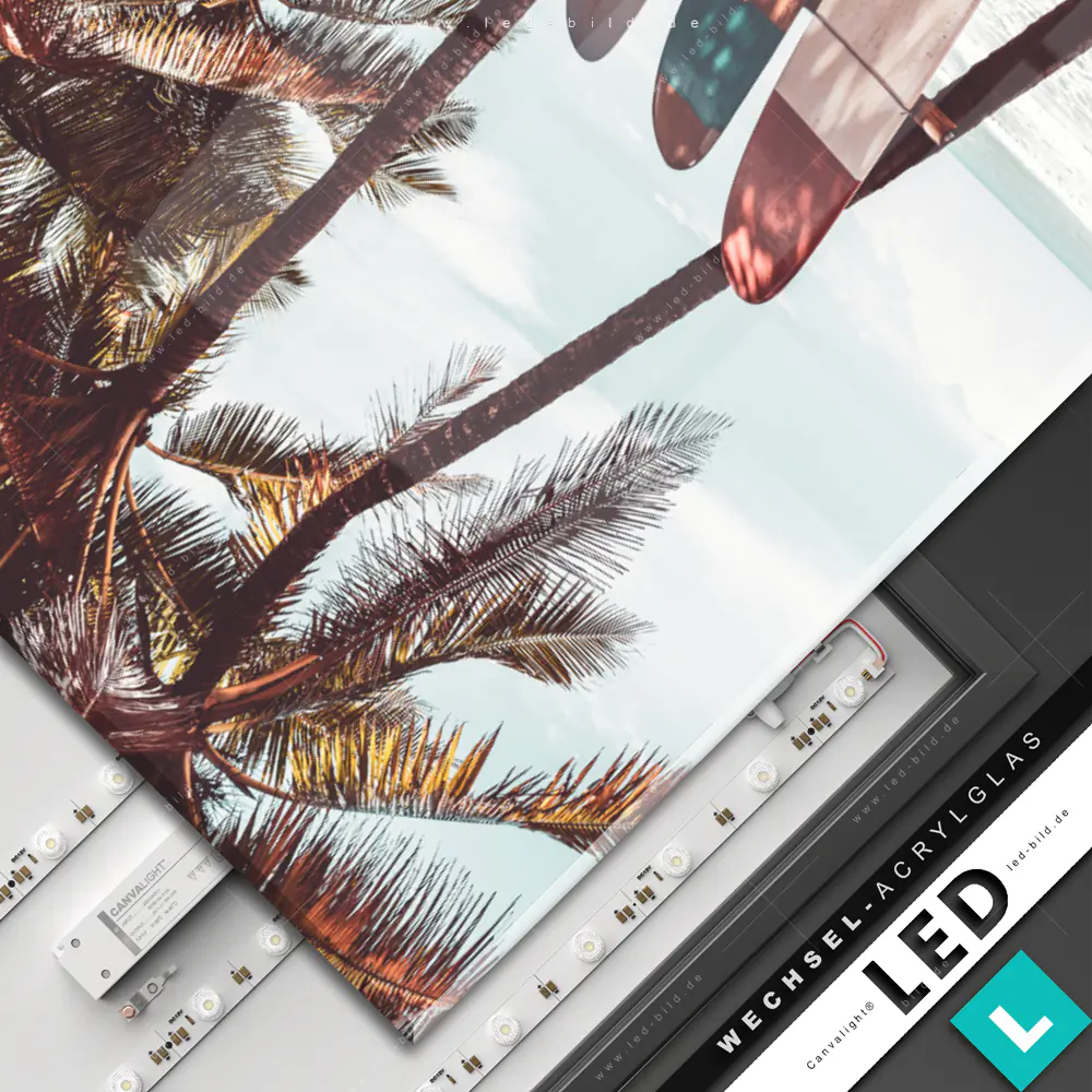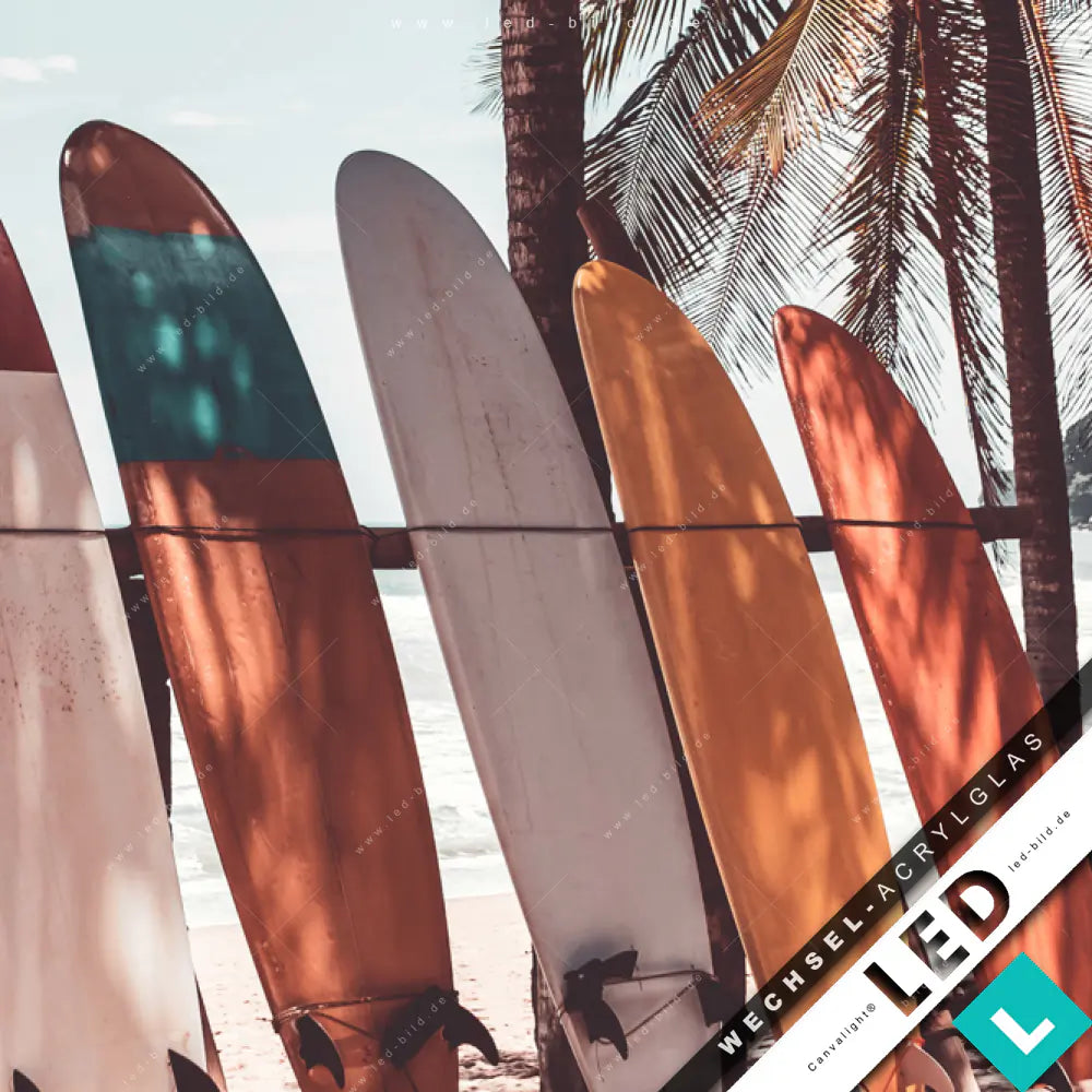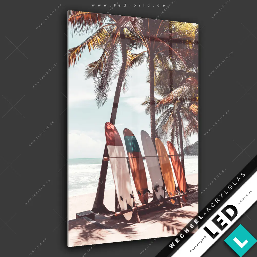 Canvalight® Wechsel-Acrylglas | Surfbretter und Palmen | Hochformat