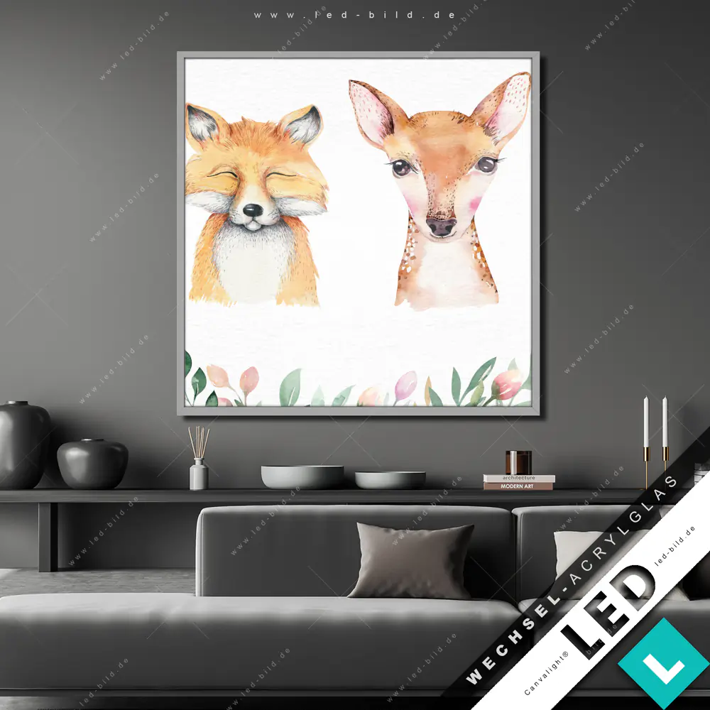Canvalight® Wechsel-Acrylglas | Tiere des Waldes | Quadrat