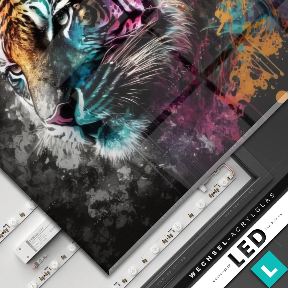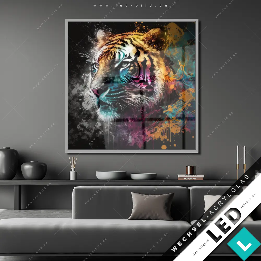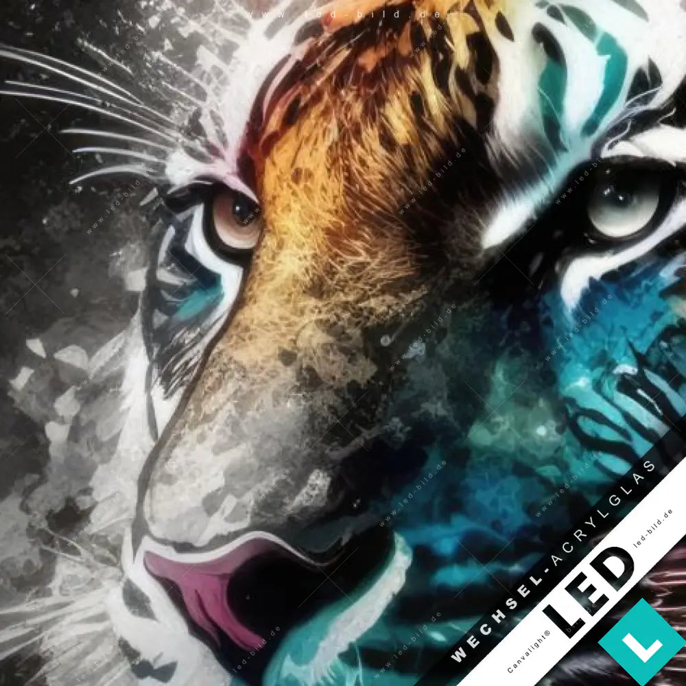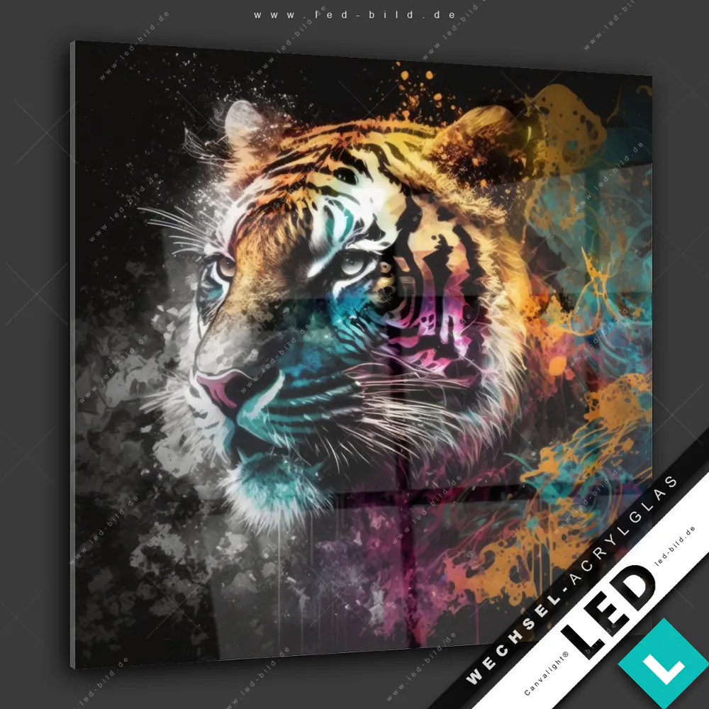 Canvalight® Wechsel-Acrylglas | Tiger im Farbrausch | Quadrat
