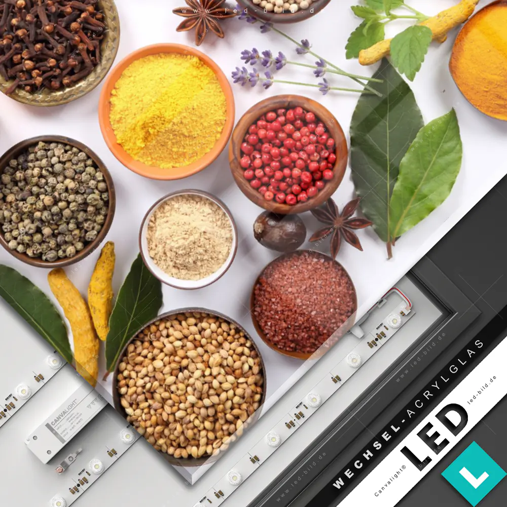 Canvalight® Wechsel-Acrylglas | Vielfältige Gewürze | Querformat