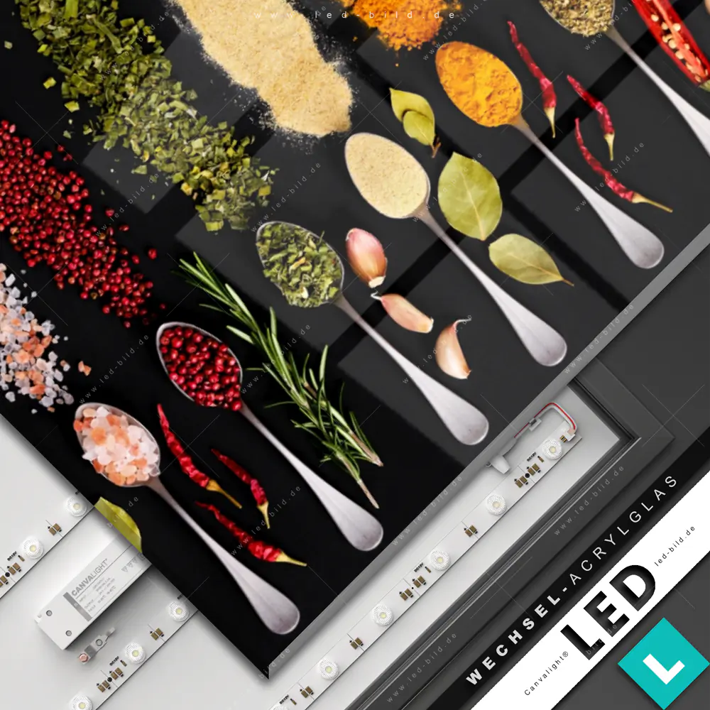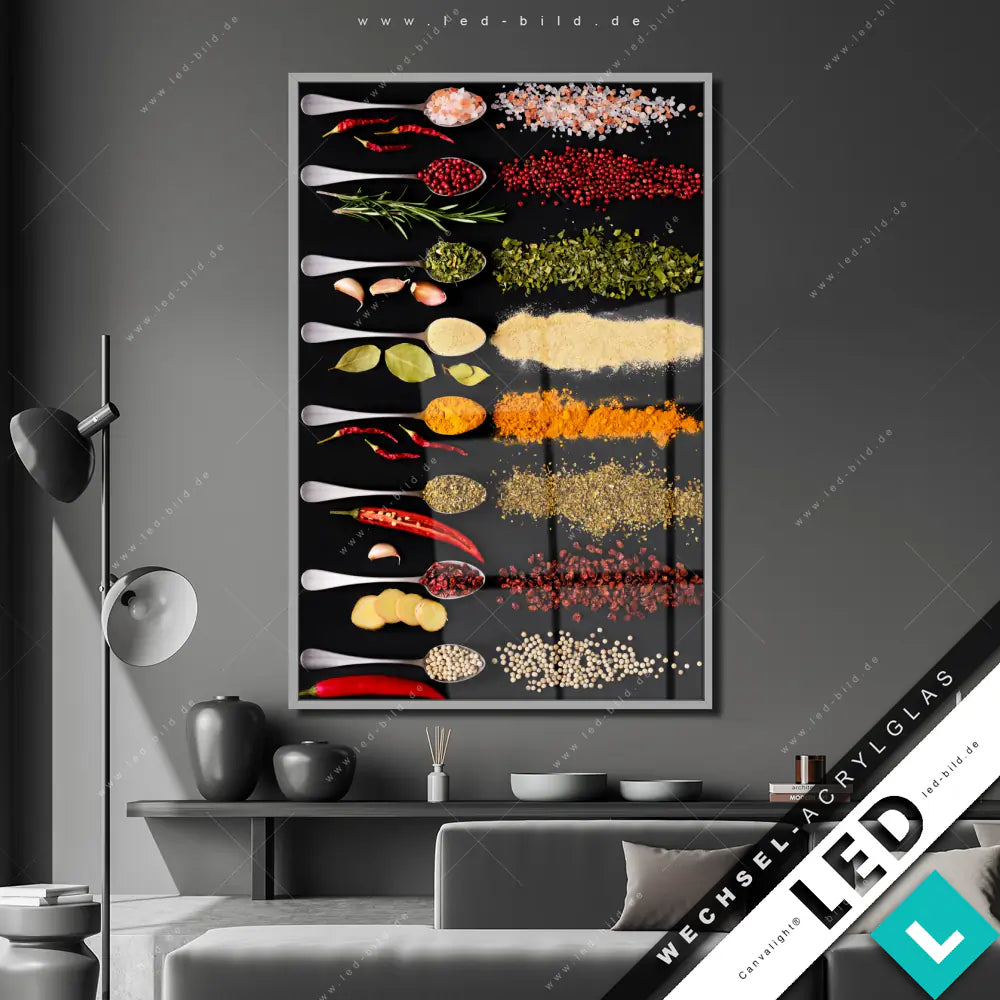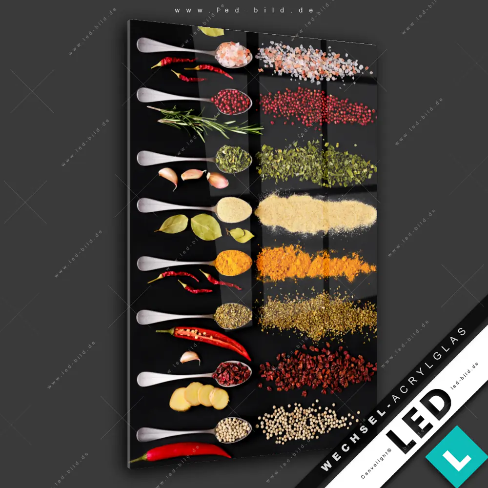 Canvalight® Wechsel-Acrylglas | Vielfalt an exotischen Gewürzen | Hochformat