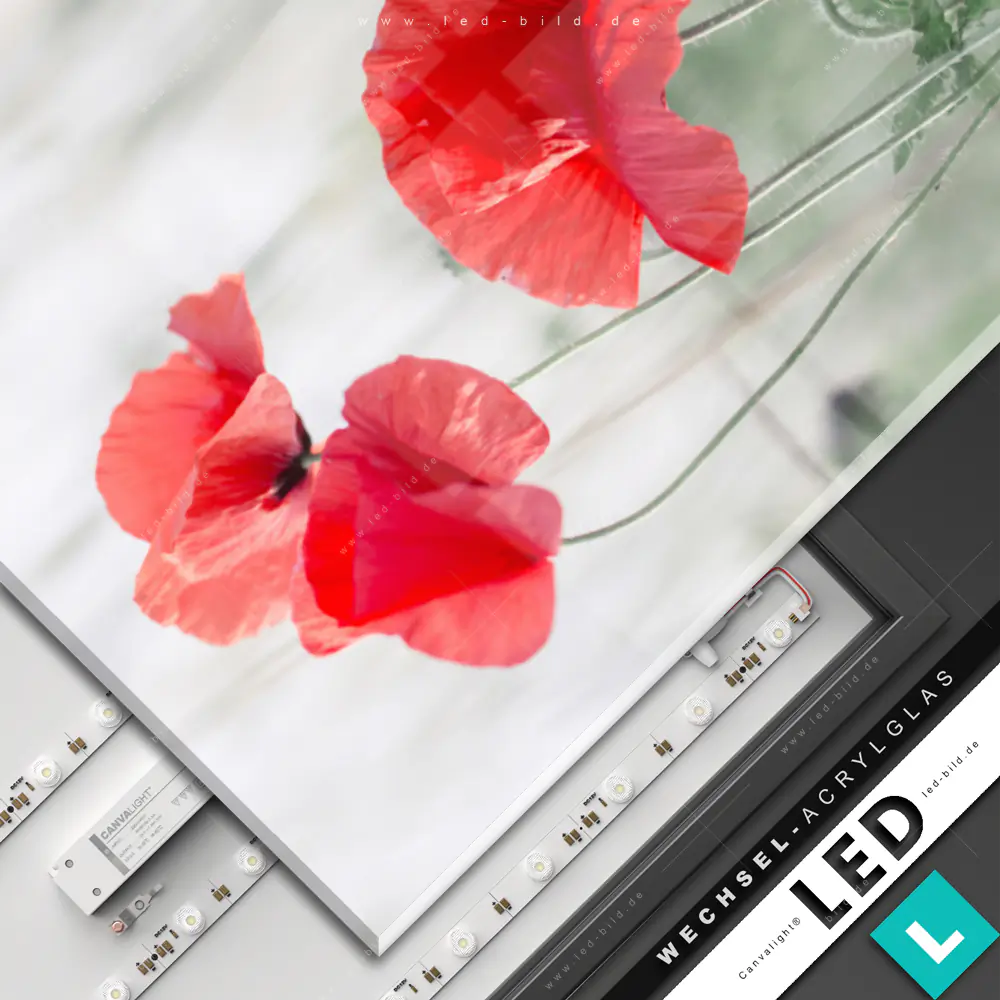 Canvalight® Wechsel-Acrylglas | Vintage Klatschmohn | Hochformat