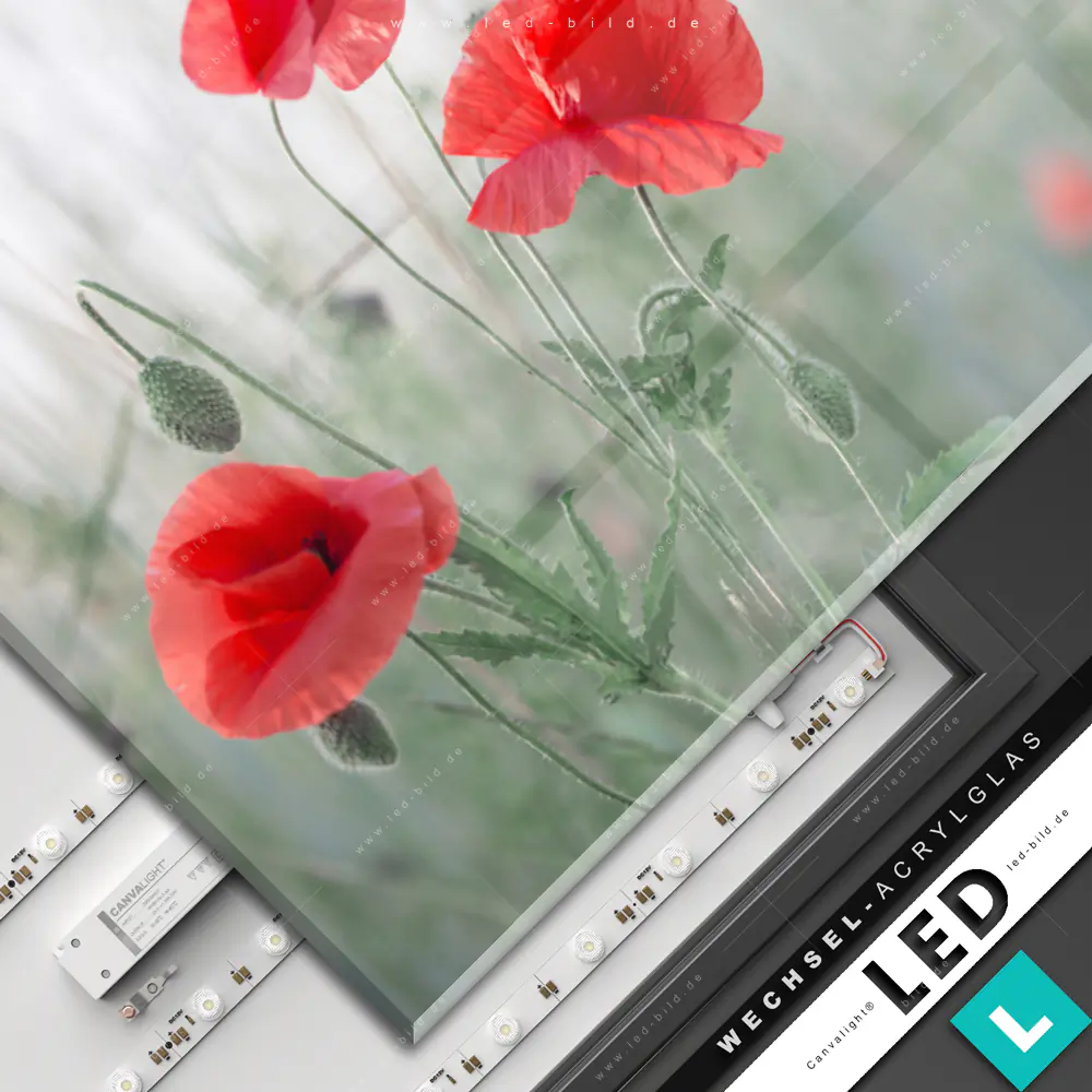 Canvalight® Wechsel-Acrylglas | Vintage Klatschmohn | Querformat