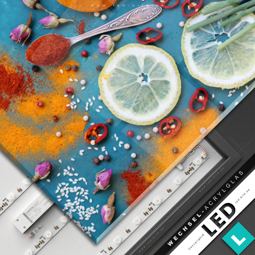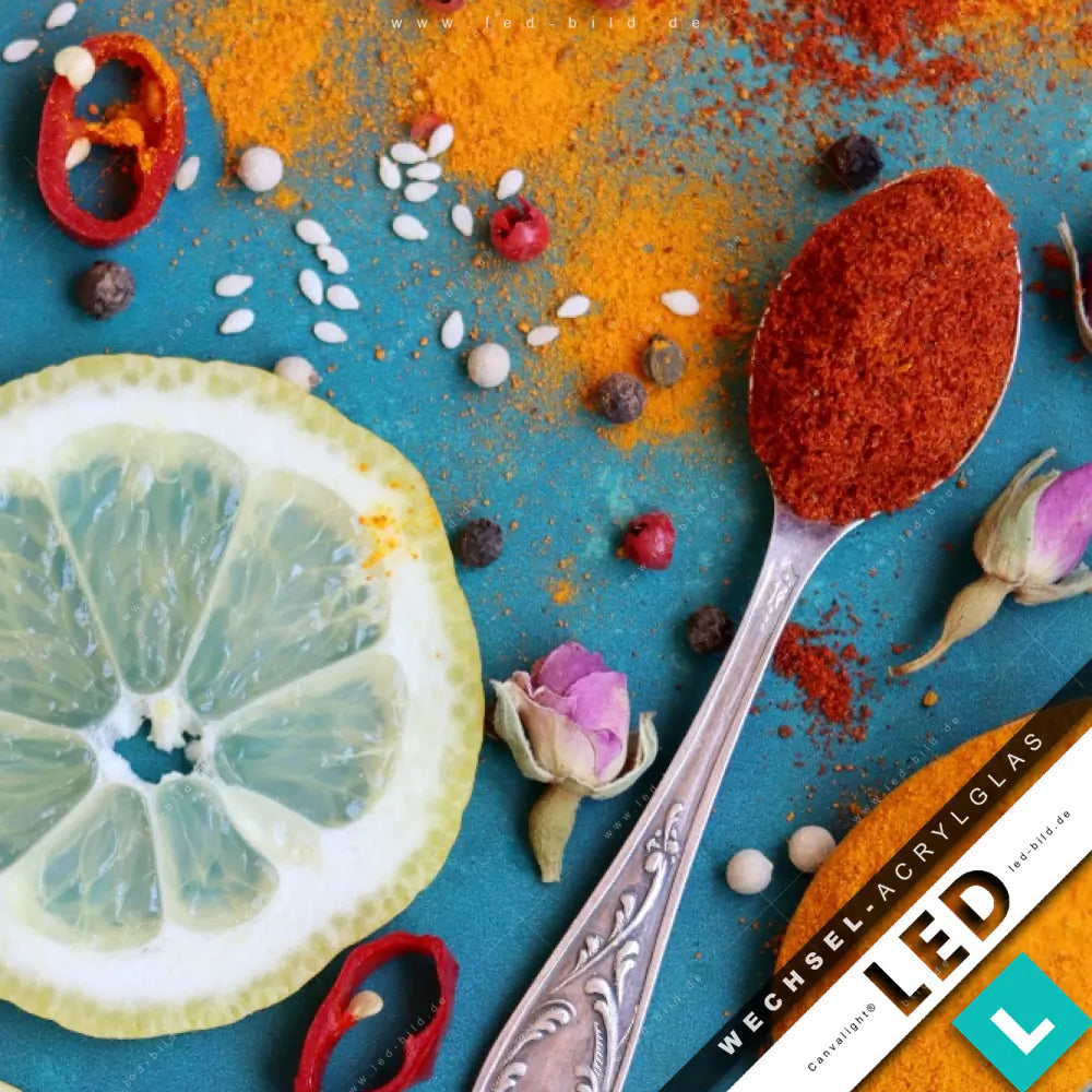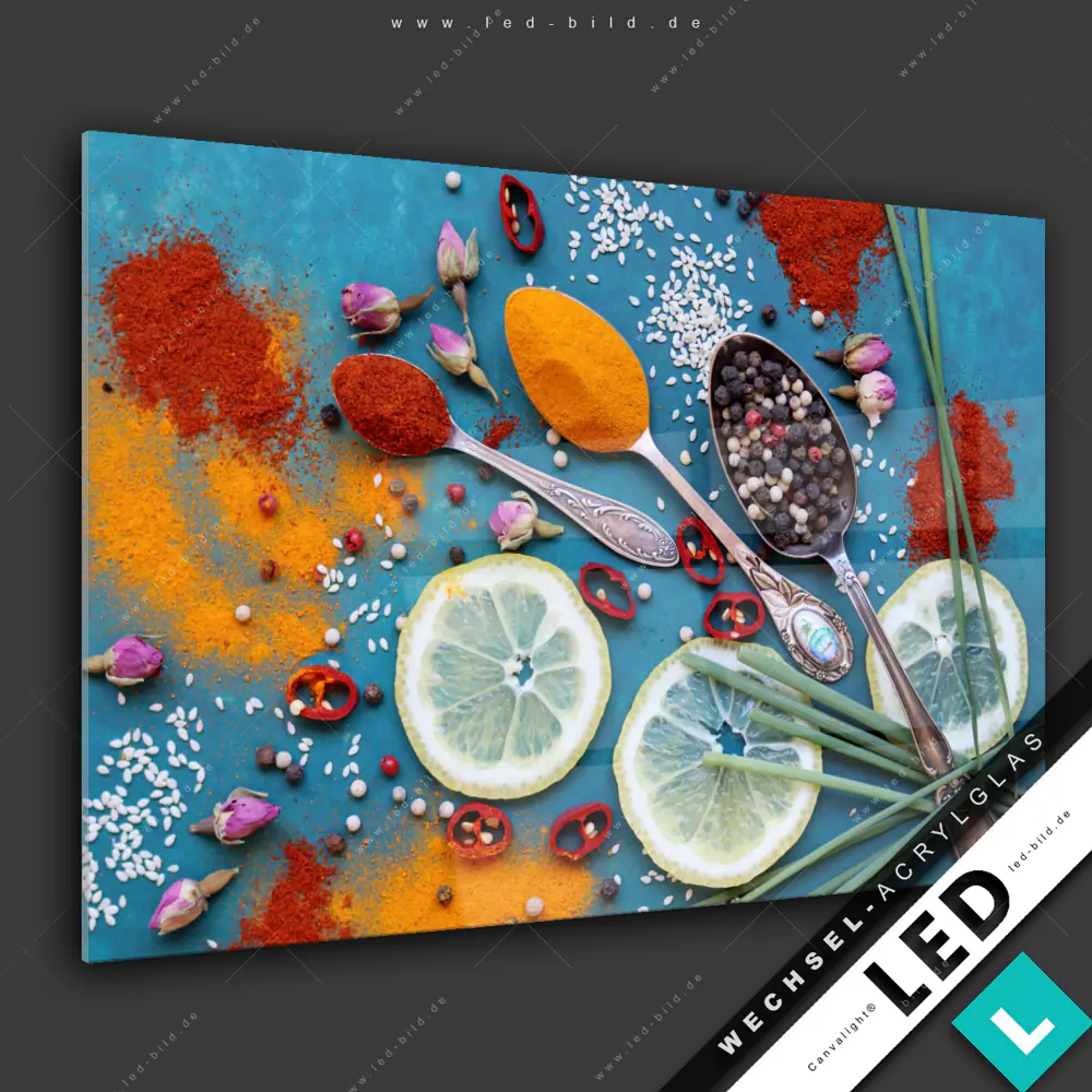 Canvalight® Wechsel-Acrylglas | Vintage Silberlöffel mit Gewürzen | Querformat