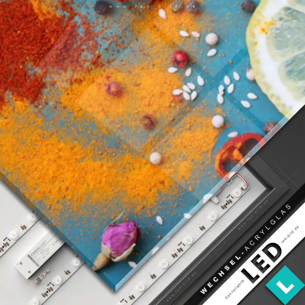 Canvalight® Wechsel-Acrylglas | Vintage Silberlöffel mit Gewürzen | Schmal