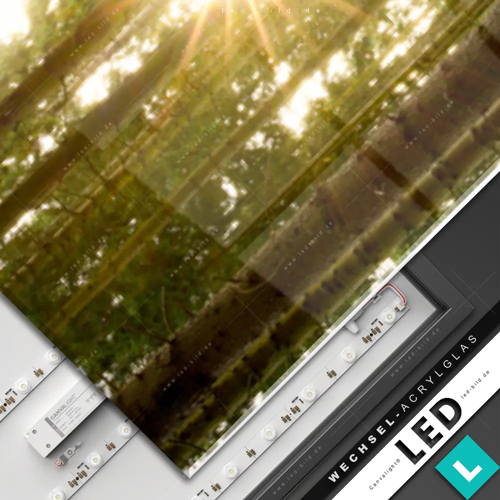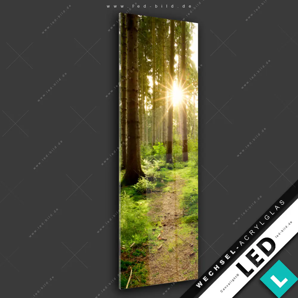 Canvalight® Wechsel-Acrylglas | Wald mit Sonnenstrahlen No.2 | Schmal