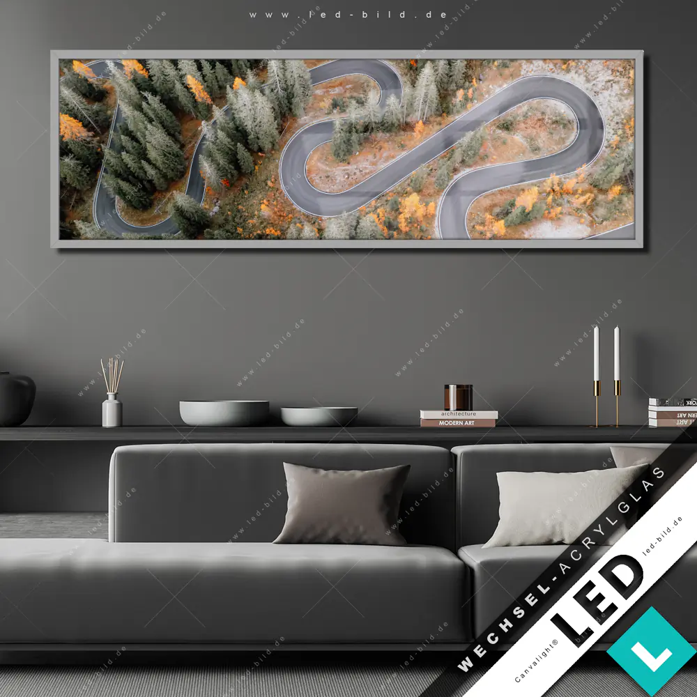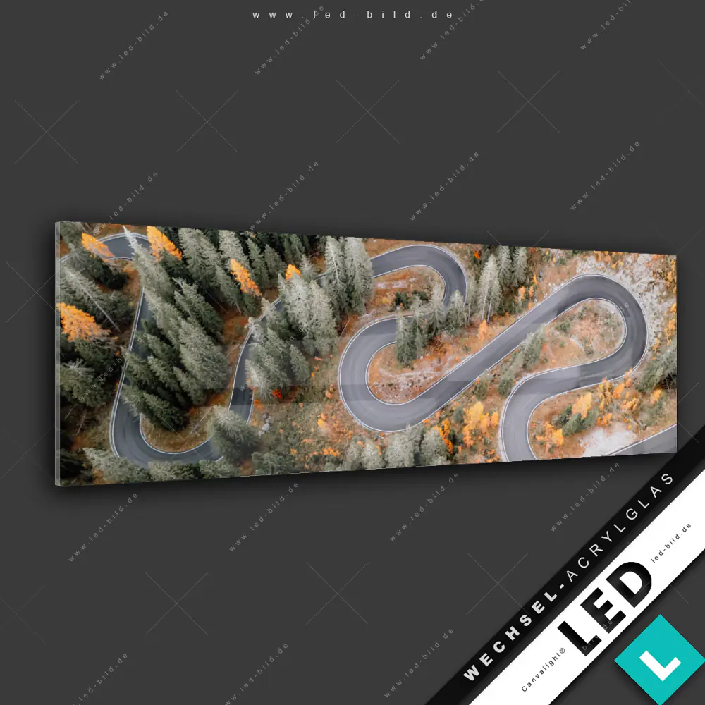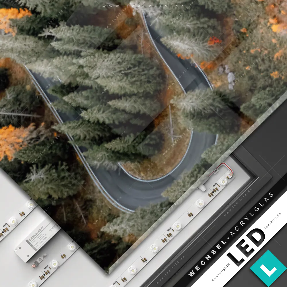 Canvalight® Wechsel-Acrylglas | Wald & Straße von oben | Panorama