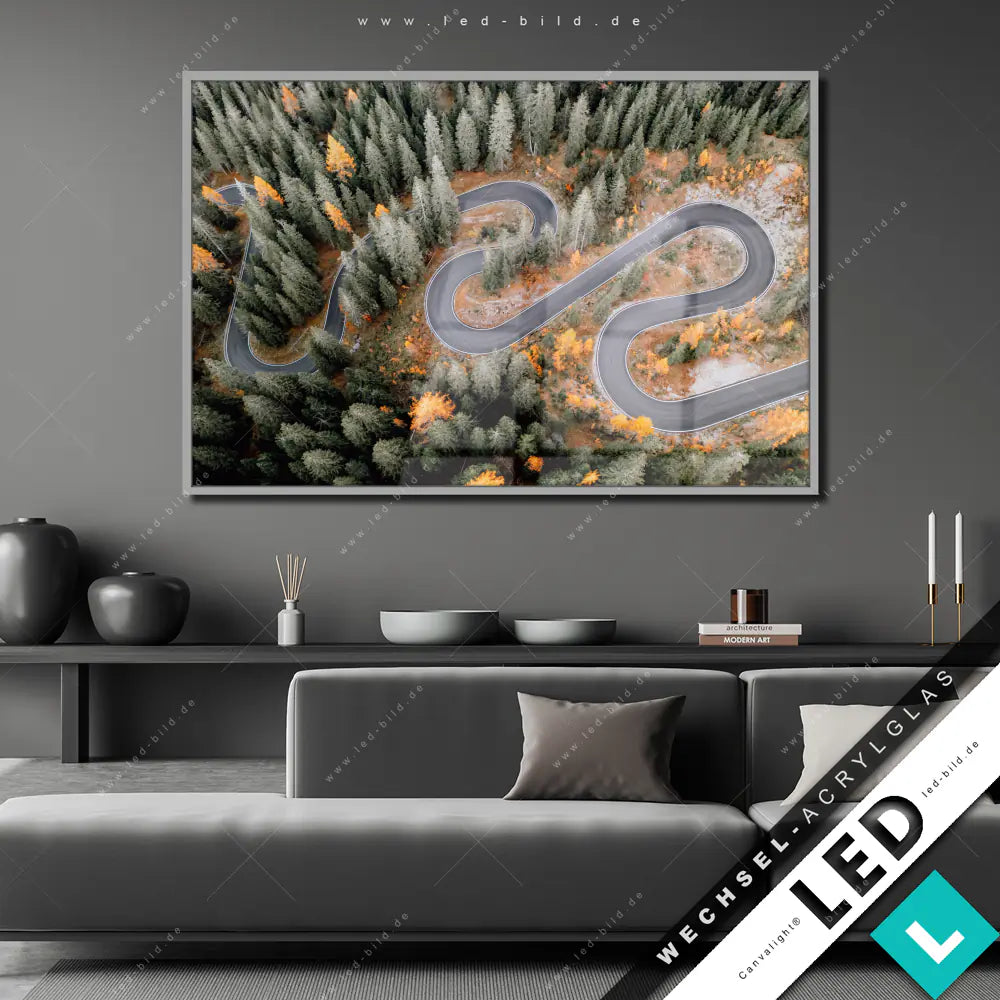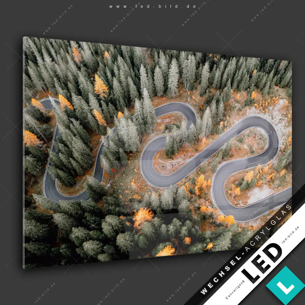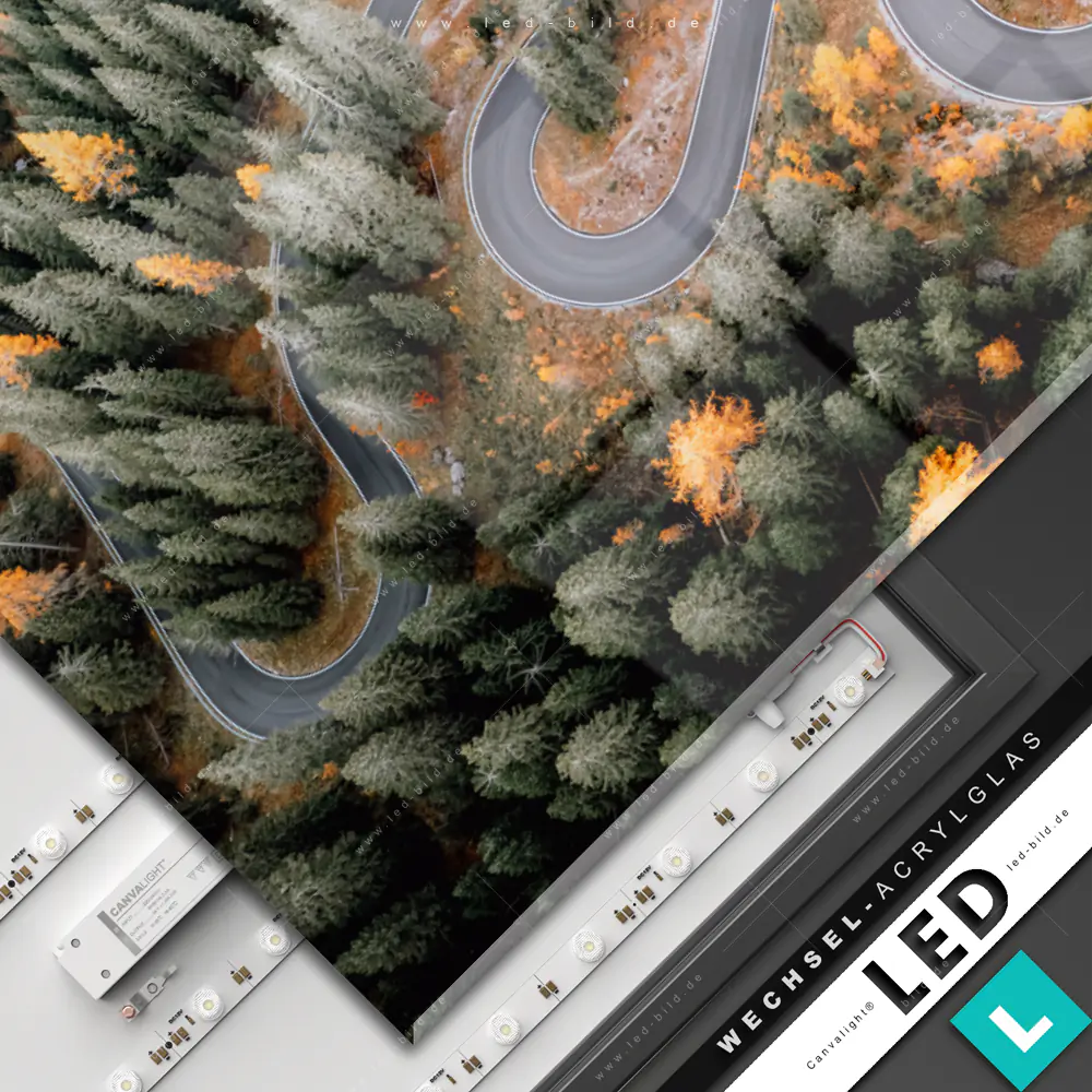 Canvalight® Wechsel-Acrylglas | Wald & Straße von oben | Querformat