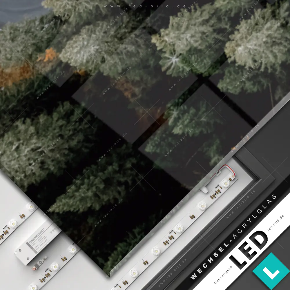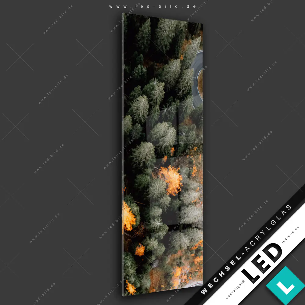 Canvalight® Wechsel-Acrylglas | Wald & Straße von oben | Schmal