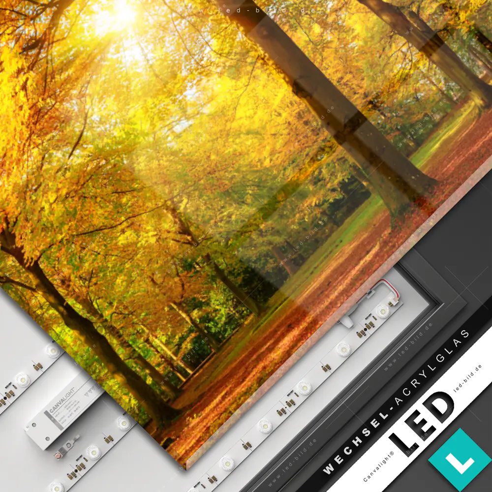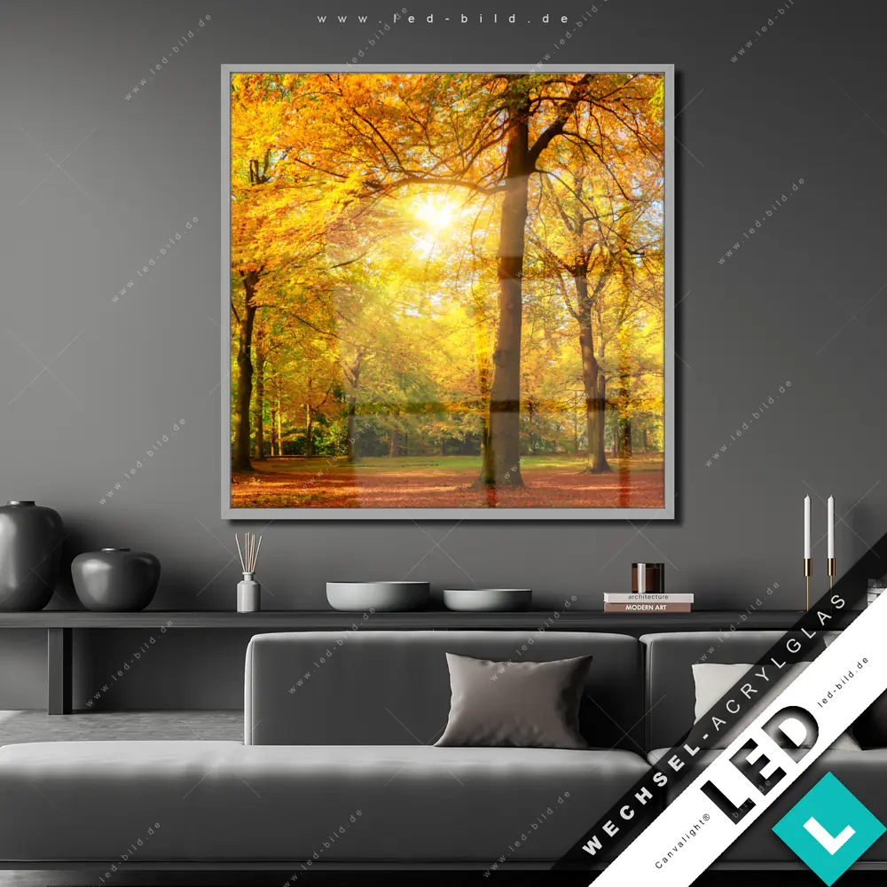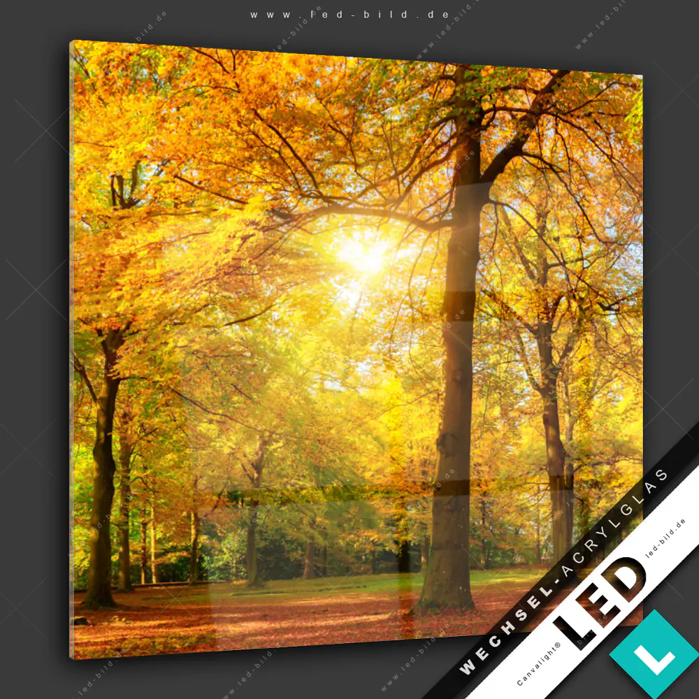 Canvalight® Wechsel-Acrylglas | Waldlandschaft im Herbst | Quadrat