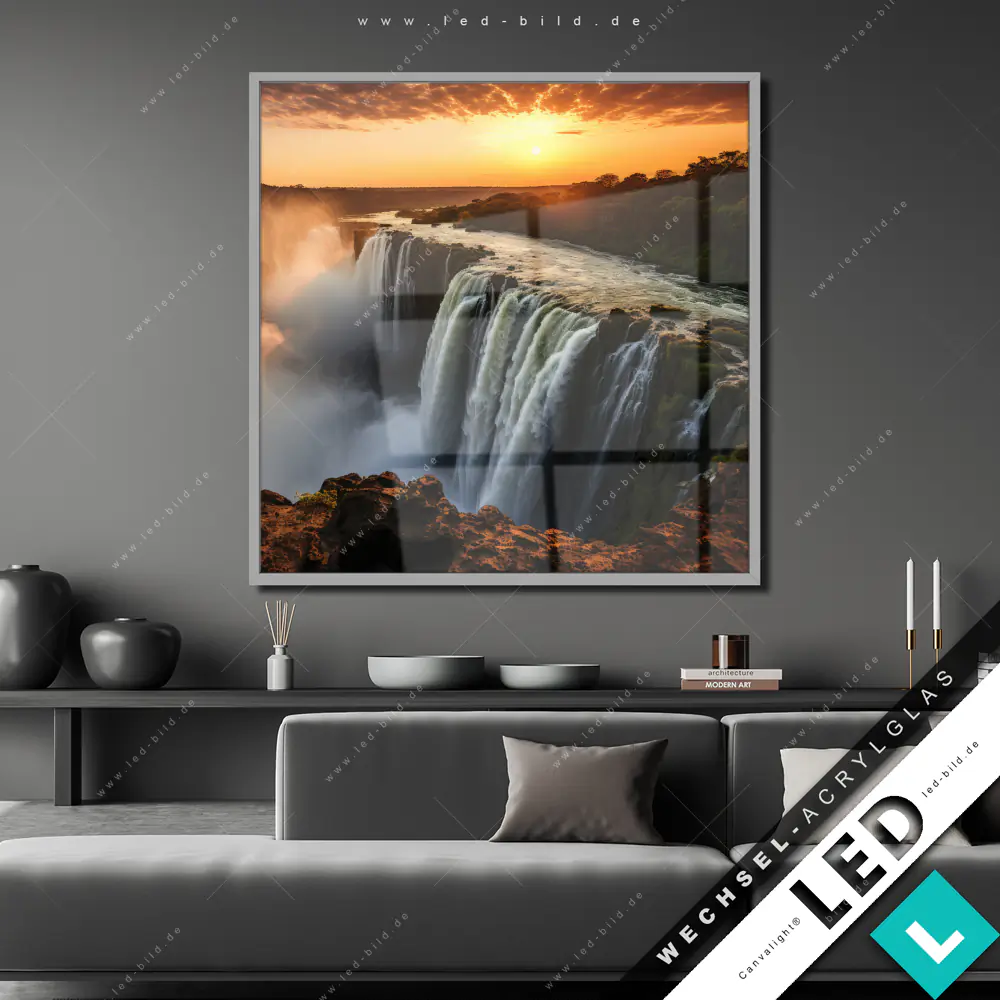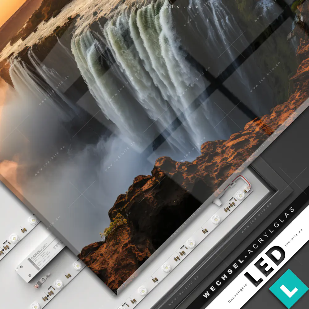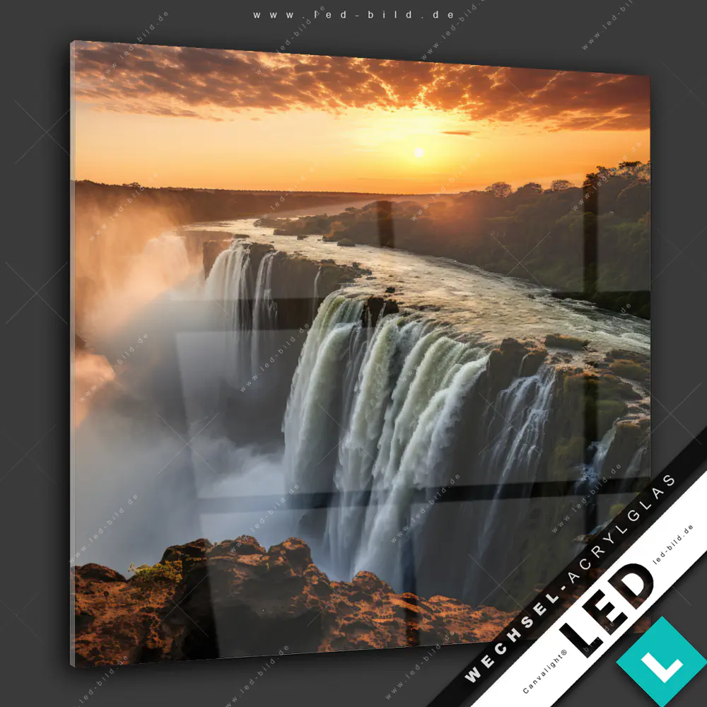 Canvalight® Wechsel-Acrylglas | Wasserfall bei Abendsonne | Quadrat