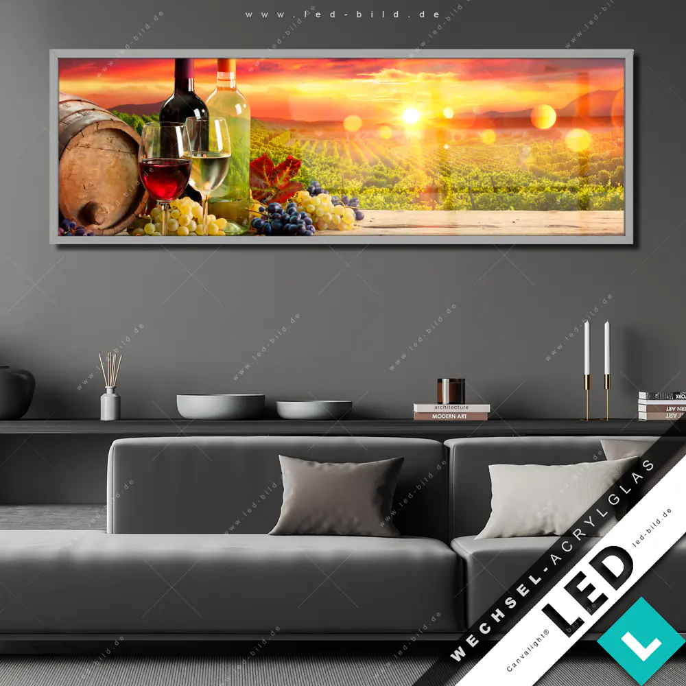 Canvalight® Wechsel-Acrylglas | Weinreben im Abendlicht | Panorama