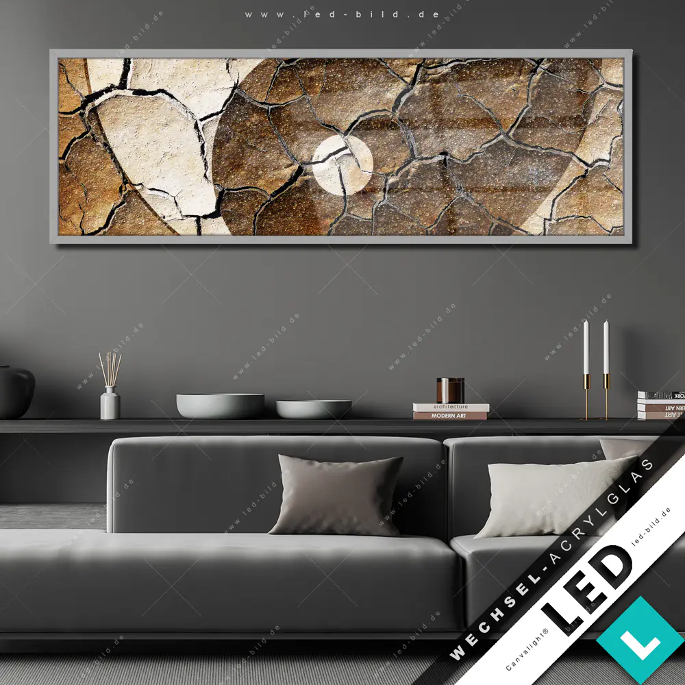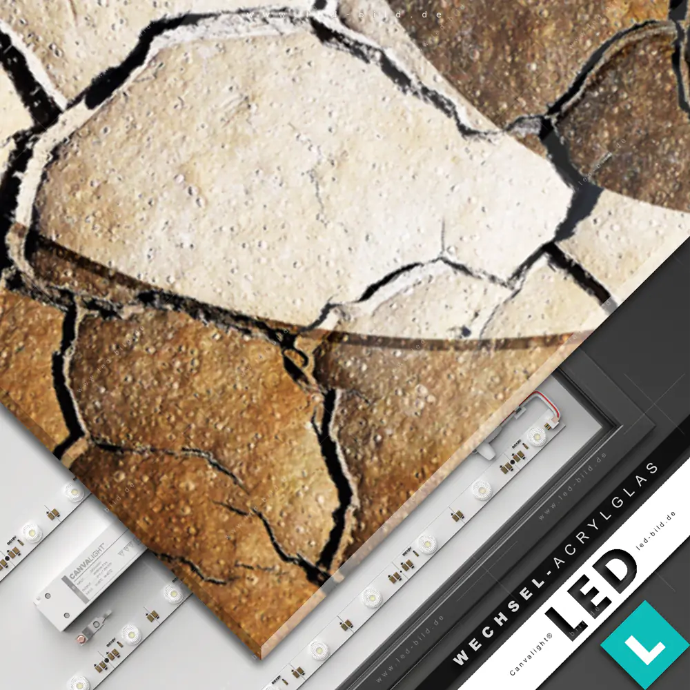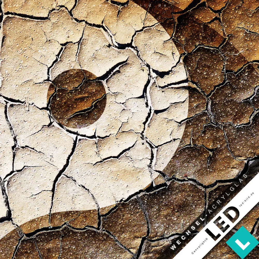 Canvalight® Wechsel-Acrylglas | Yin Yang auf rissiger Erde | Panorama