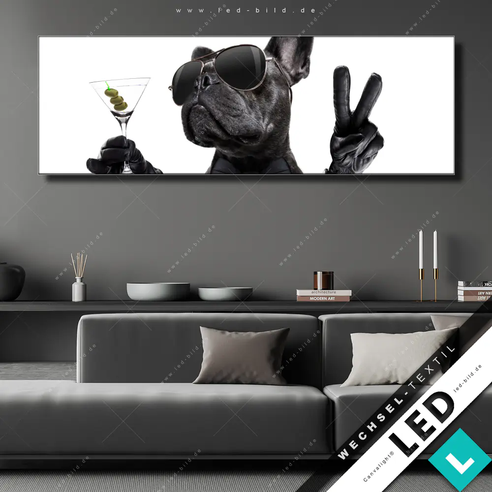 Canvalight® Wechsel-Textil | Bulldogge mit Martini | Panorama